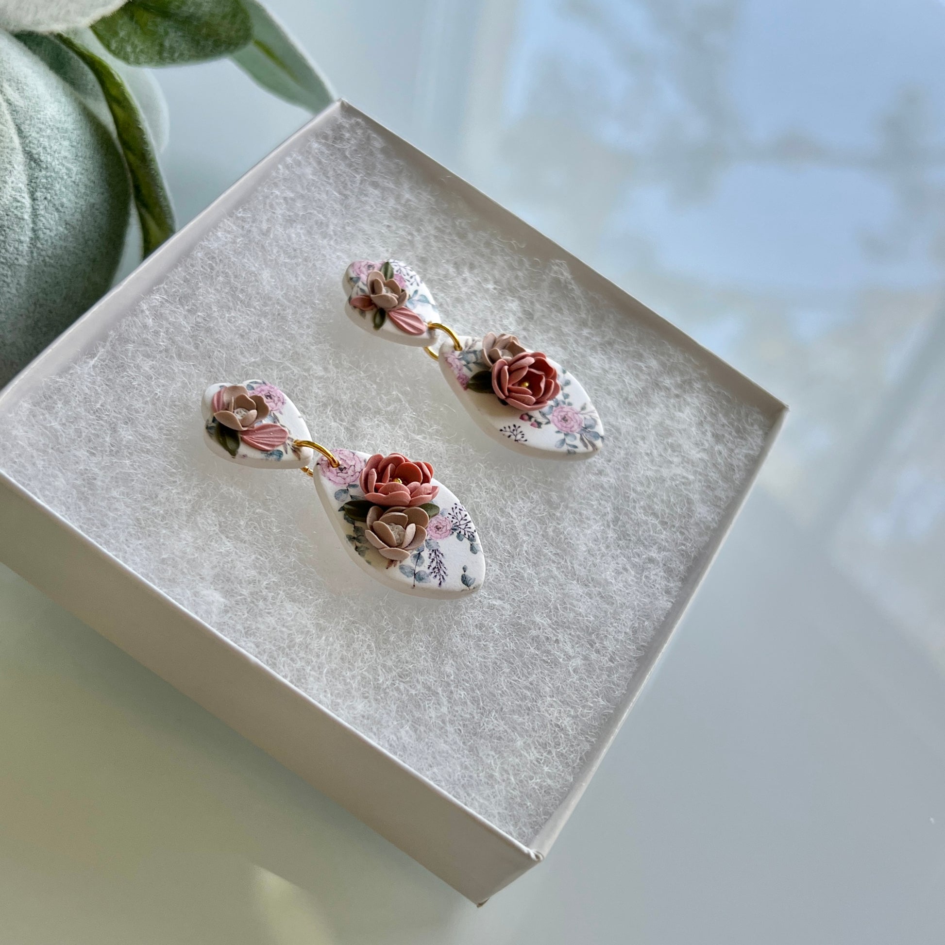Please be mindful of the handmade nature of these clay creations. They can withstand normal wear but please refrain from wearing them in water, excessive heat or near tiny hands. Your earrings are delicate, especially the flower designs. Avoid the use of oils, cream or perfume, as they might affect the longevity. Due to the handmade nature, please allow slight variances in pattern and color due to display differences.