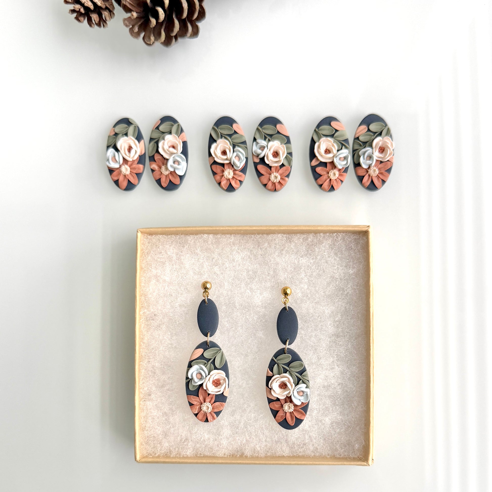 Please be mindful of the handmade nature of these clay creations. They can withstand normal wear but please refrain from wearing them in water, excessive heat or near tiny hands. Your earrings are delicate, especially the flower designs. Avoid the use of oils, cream or perfume, as they might affect the longevity. Please allow slight variances in pattern and color due to display differences.