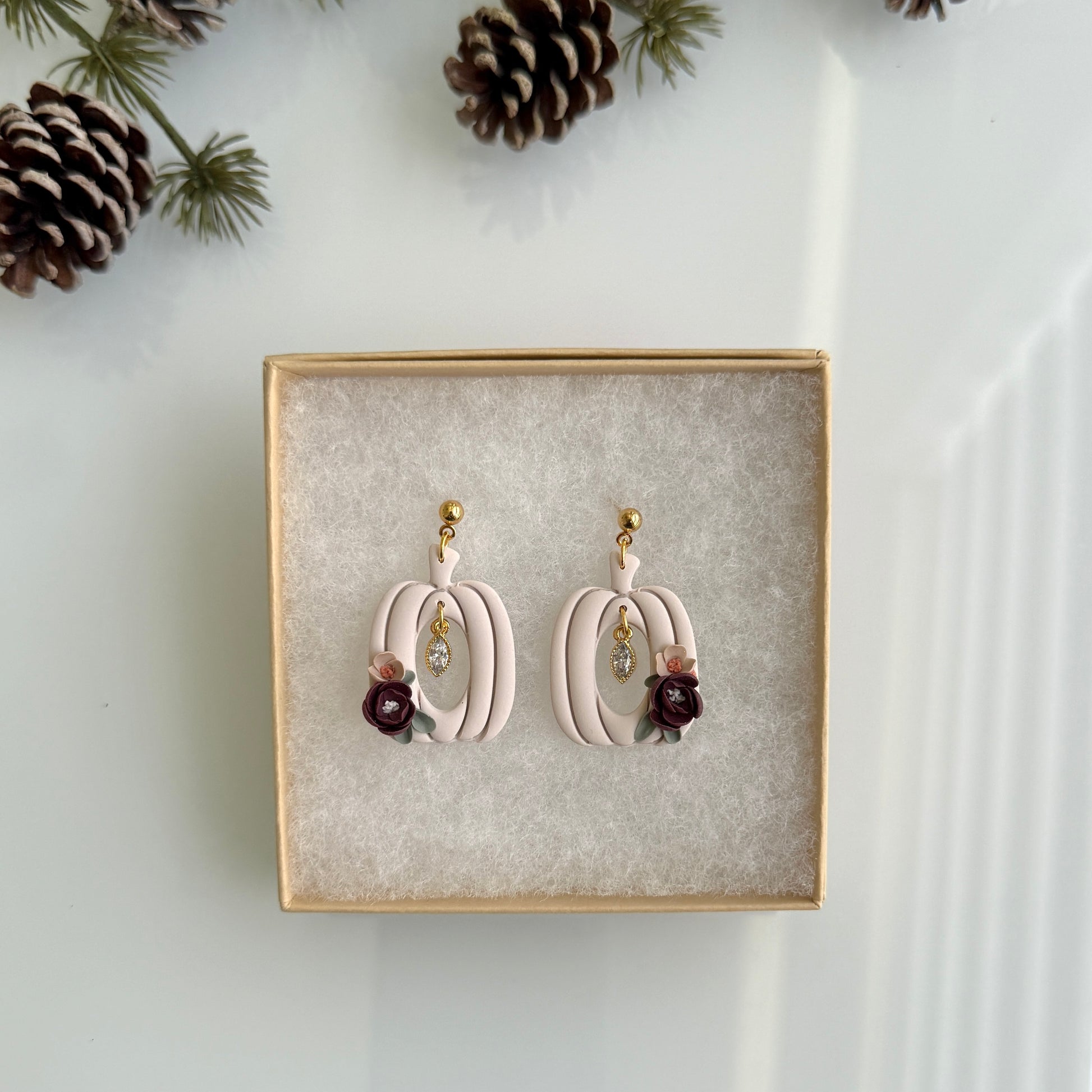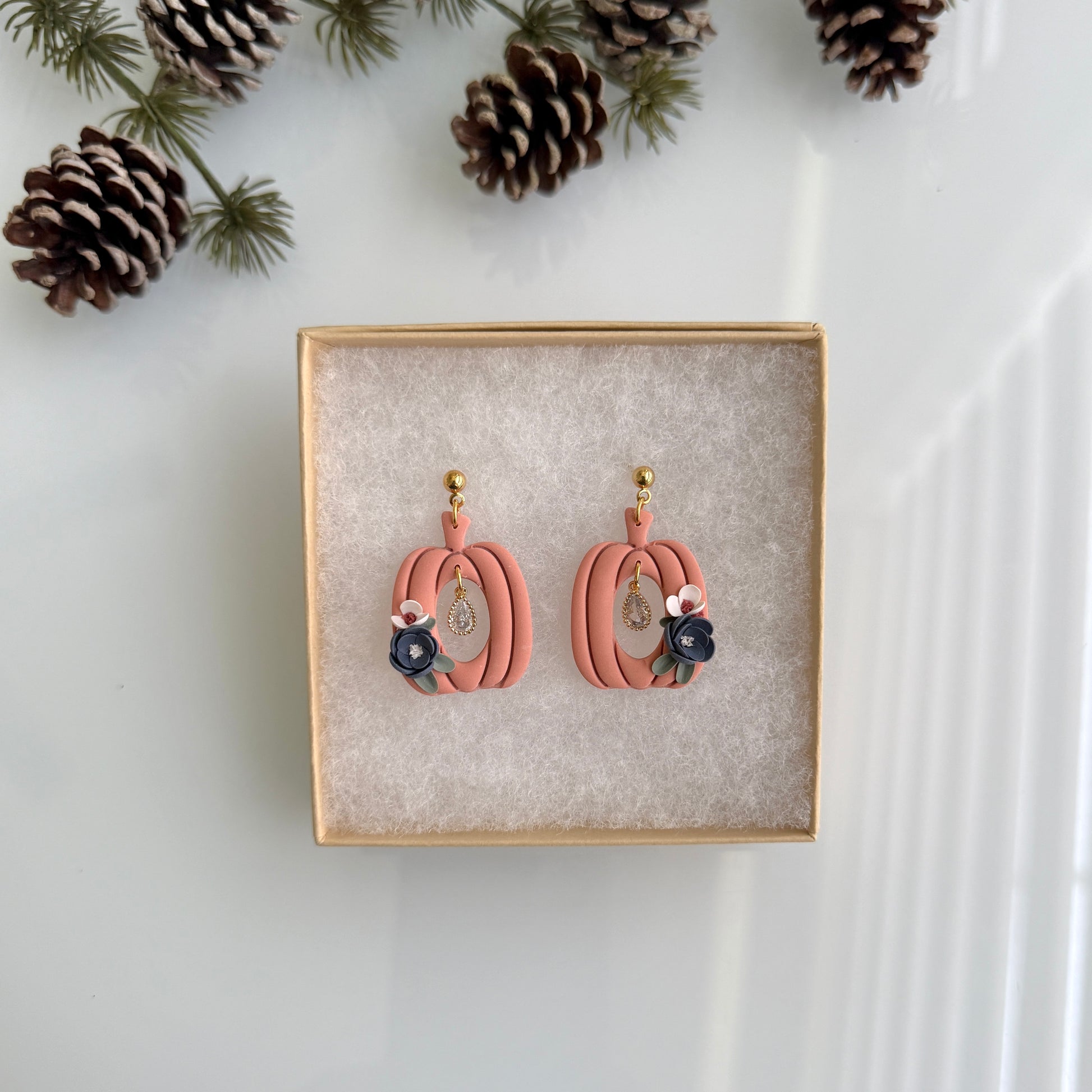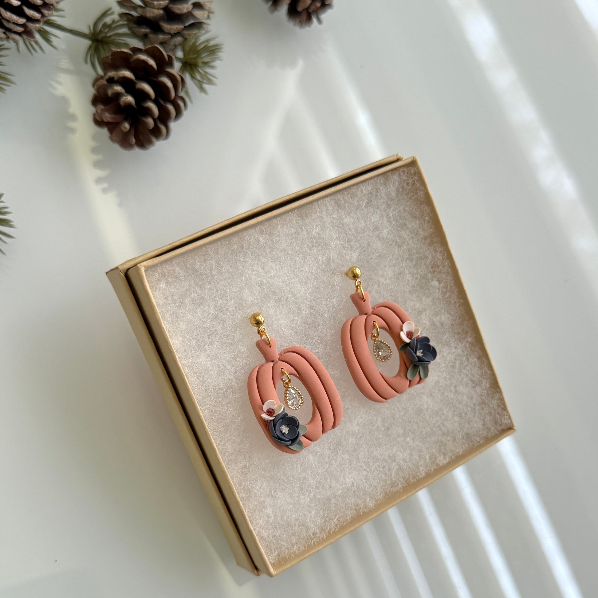 Pumpkin with 3D flowers, charm detail and ball stud: Approximate total length: 37mm