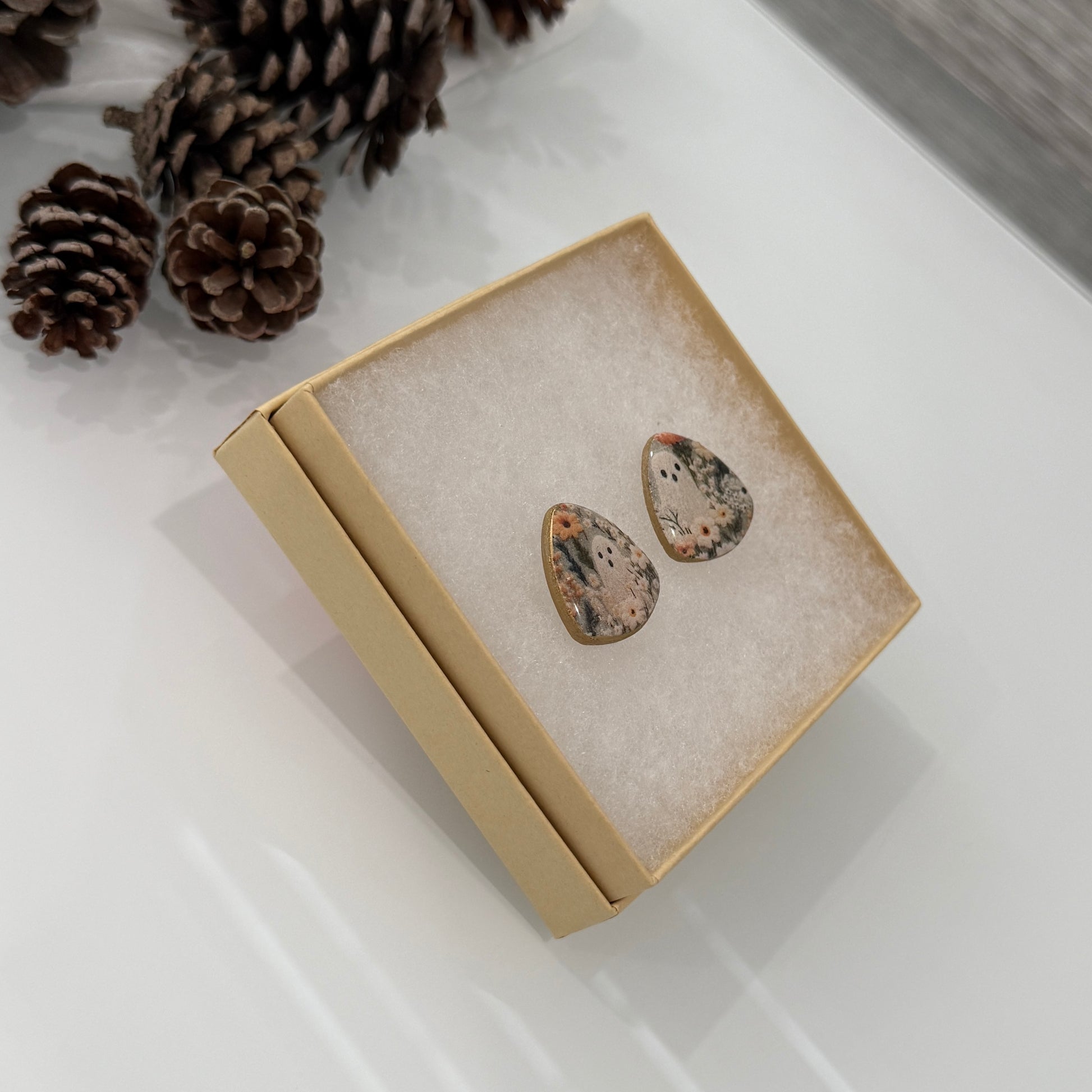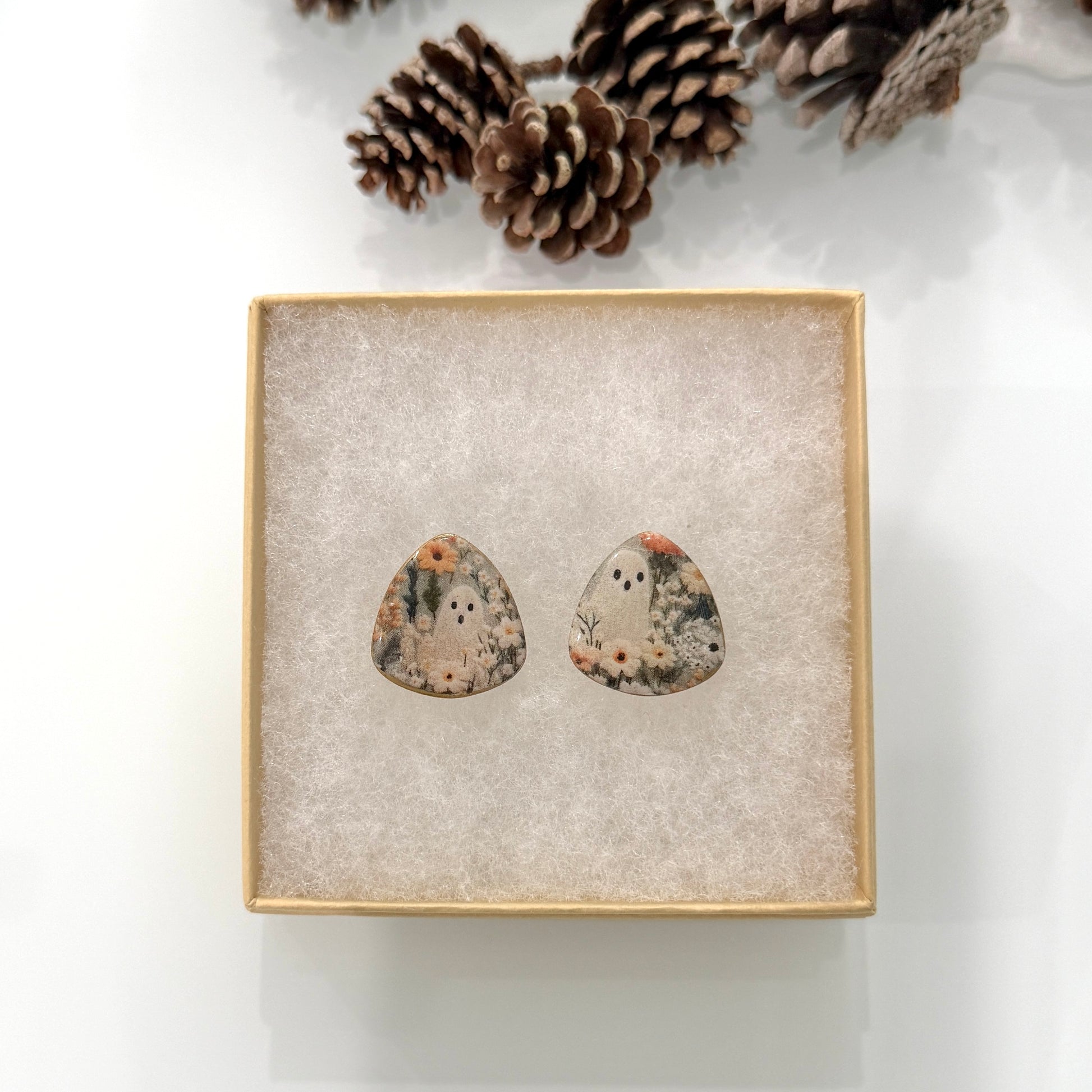 Rounded triangle Spooky print with shiny resin: Approximate size 24mm.