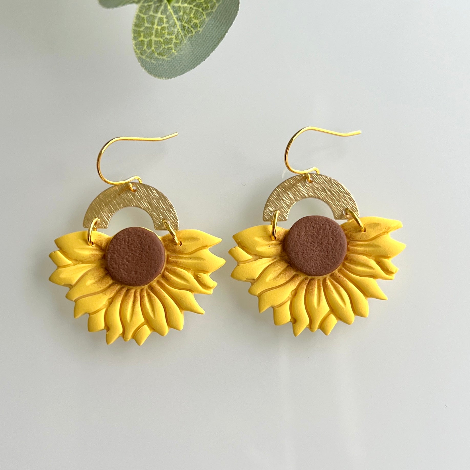 Bright yellow Sunflower with arch detail and standard ear hook. Approximate total length: 45mm