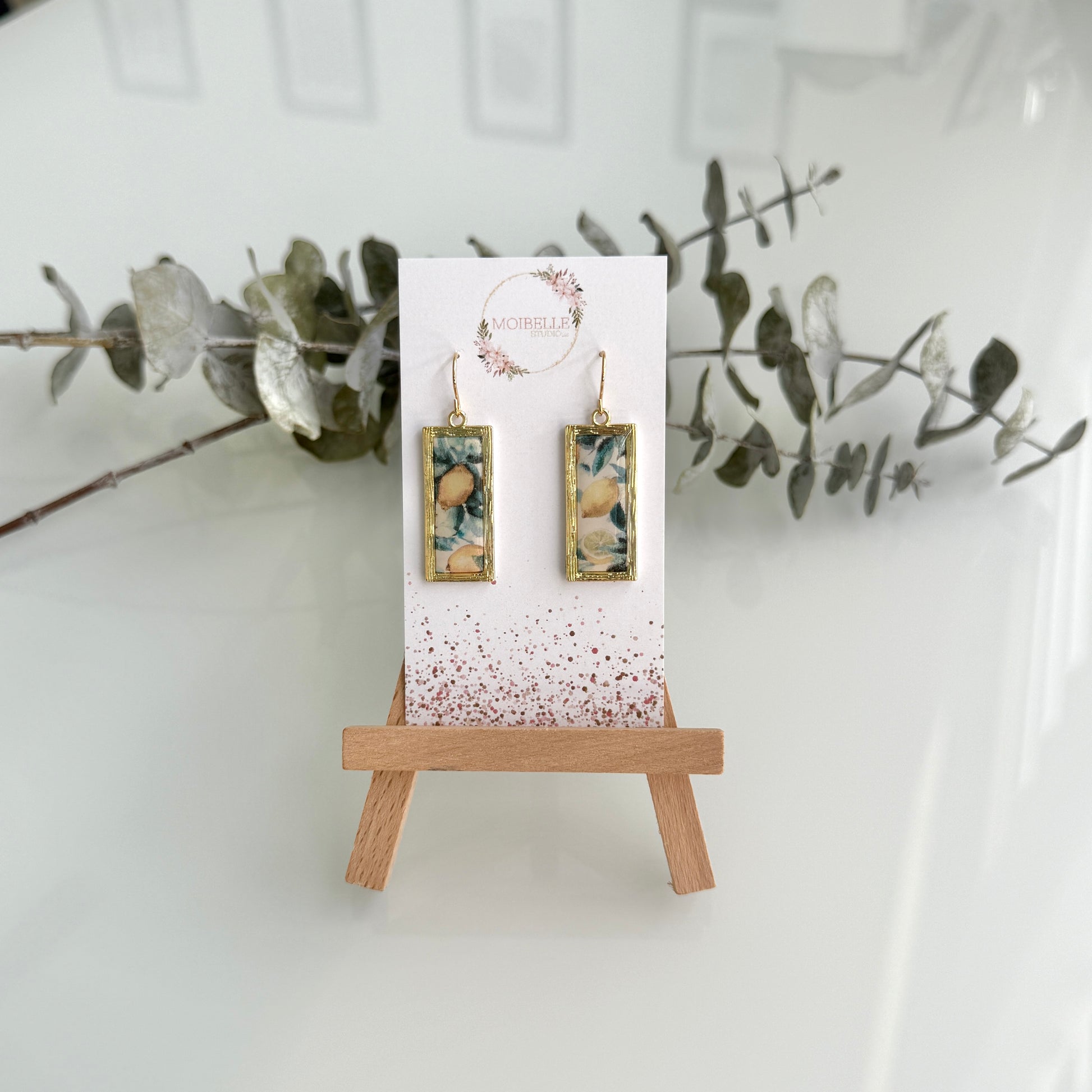 Rectangle(30mmx13mm), lemon print with standard ear hooks Approximate diameter: 44mm