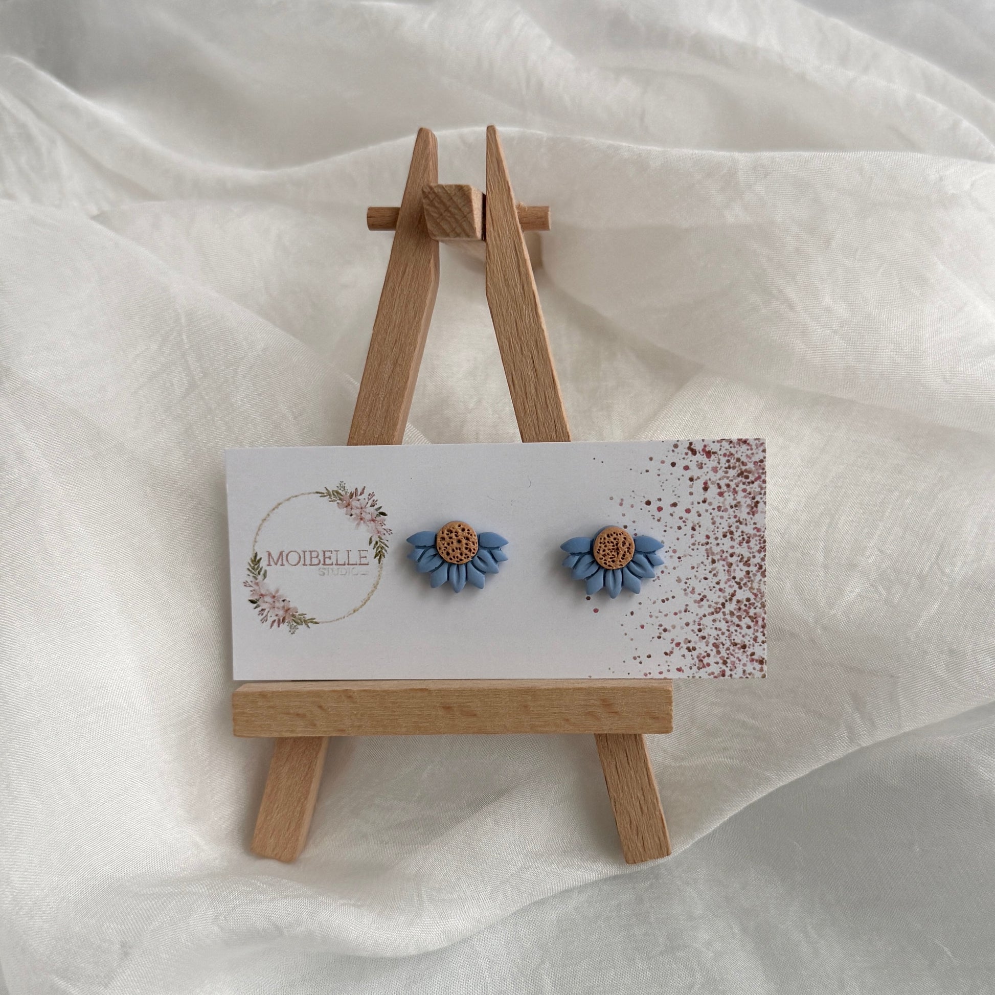 Half Sunflower studs: Carmel and Blue