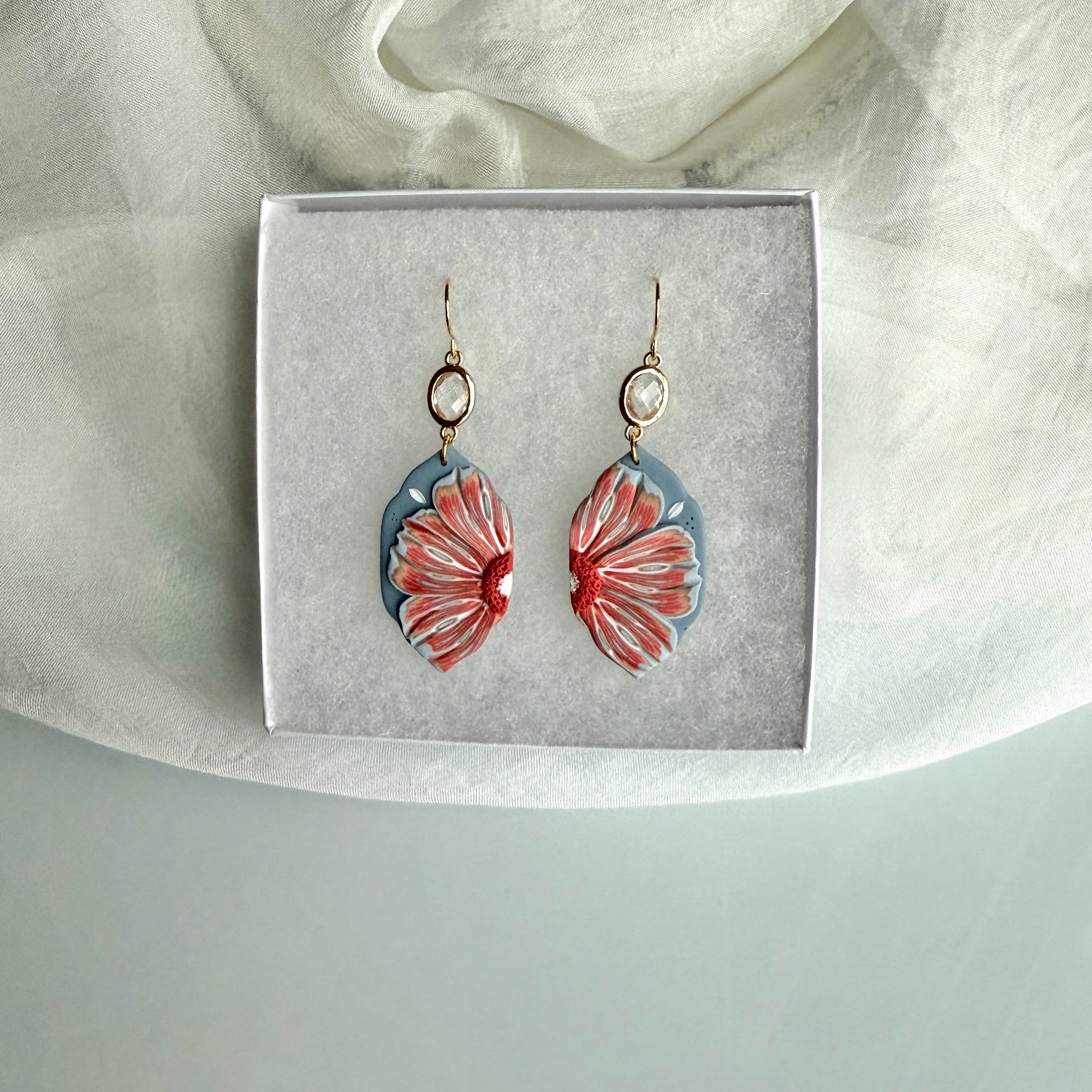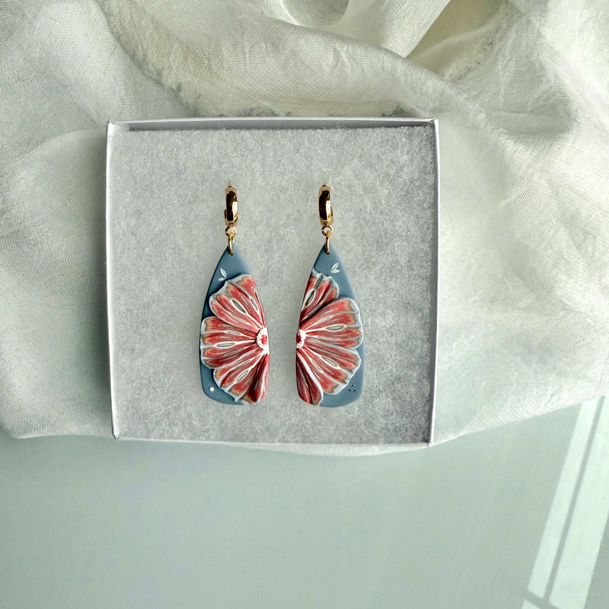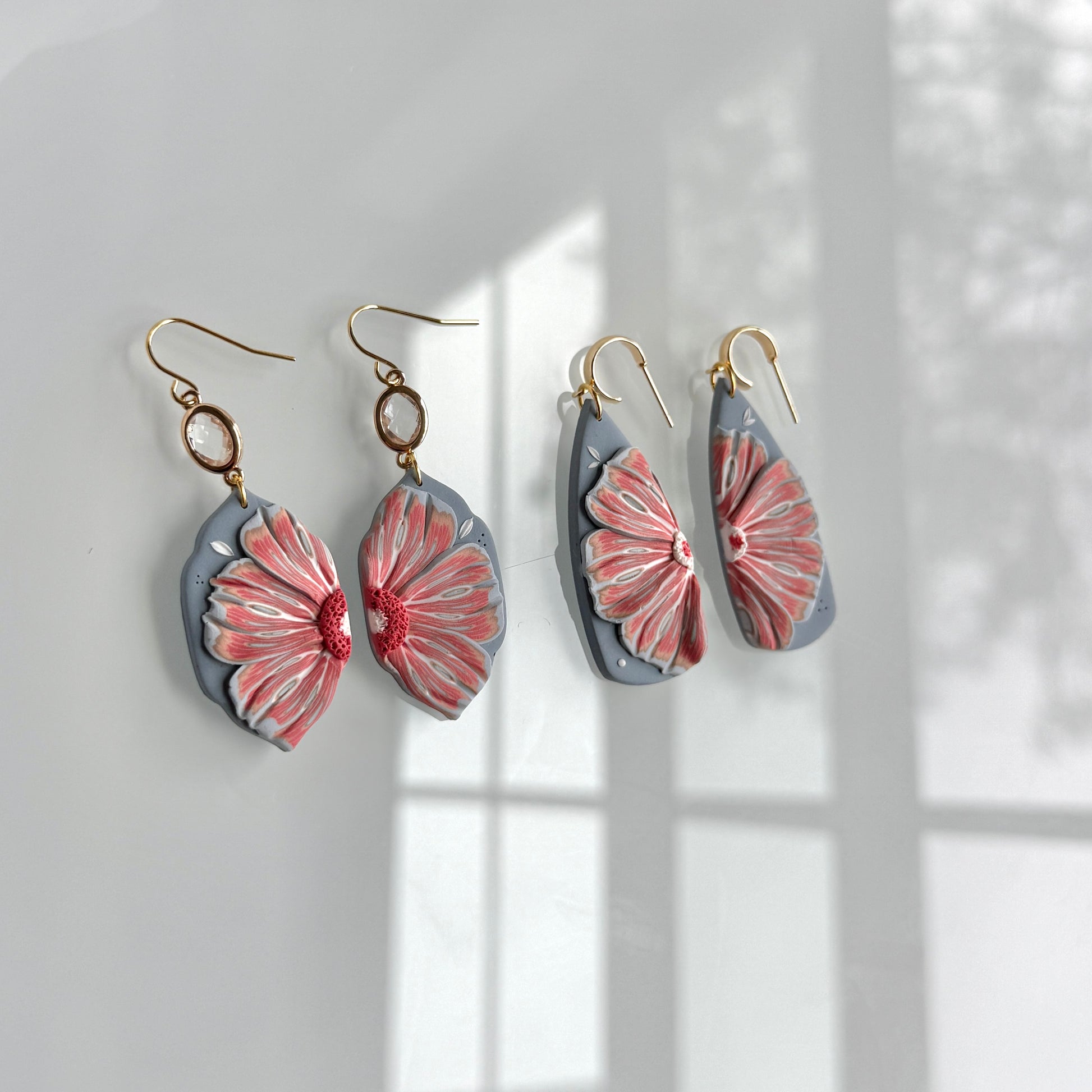 Please be mindful of the handmade nature of these clay creations. They can withstand normal wear but please refrain from wearing them in water, excessive heat or near tiny hands. Your earrings are delicate, especially the flower designs. Avoid the use of oils, cream or perfume, as they might affect the longevity. Due to the handmade nature, please allow slight variances in pattern and color due to the handmade nature and display differences.