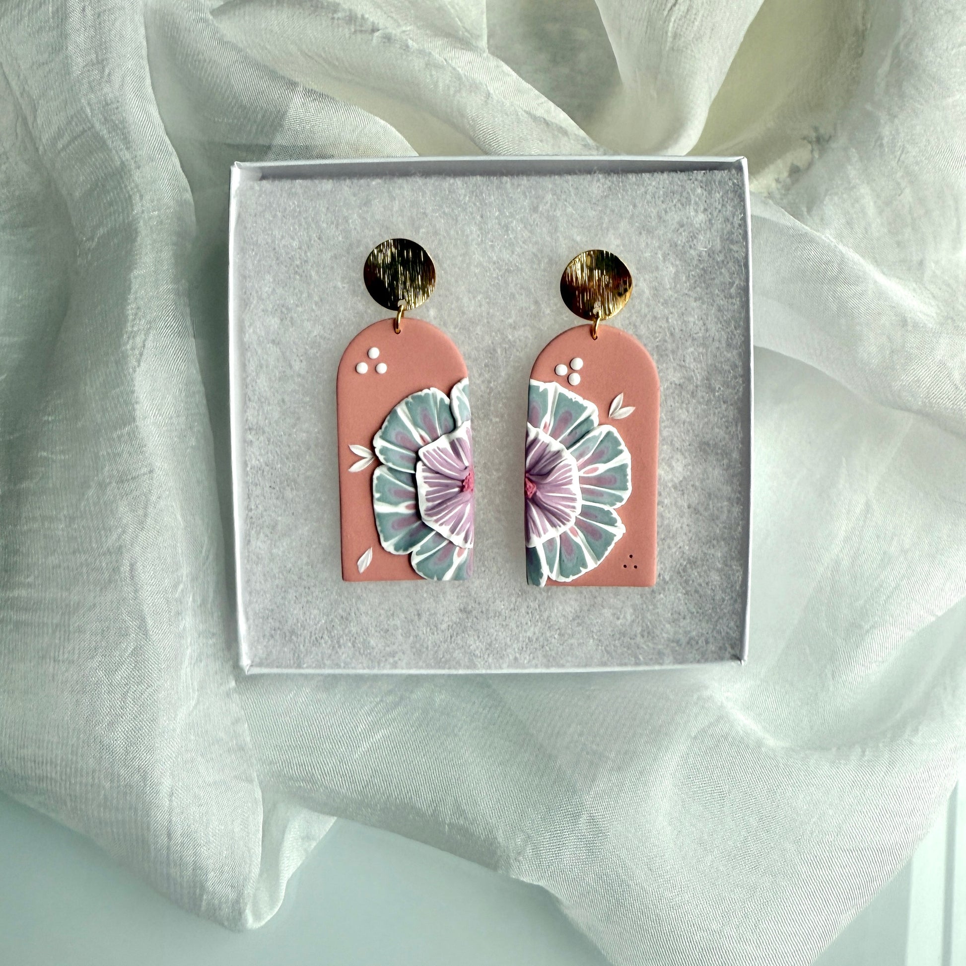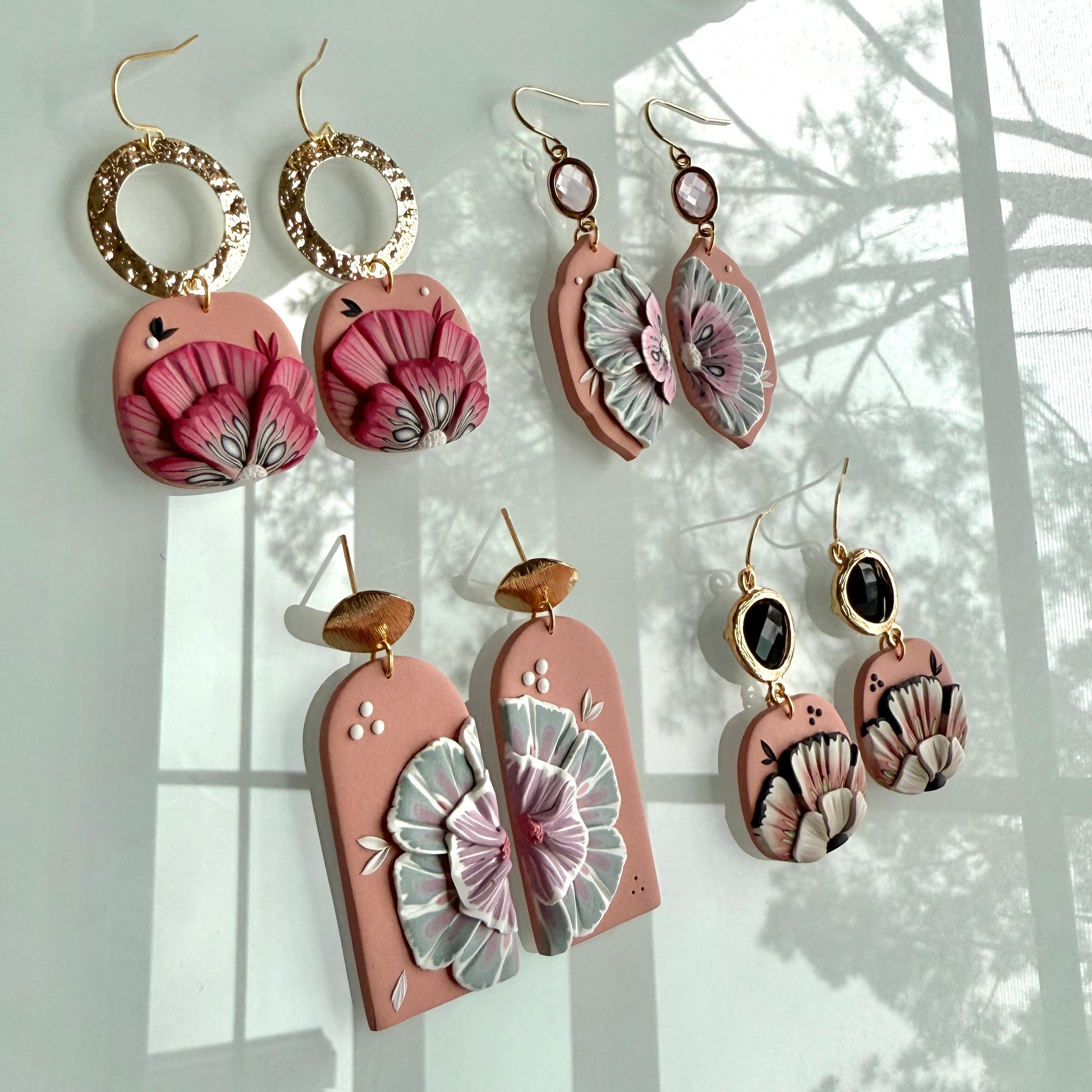 Please be mindful of the handmade nature of these clay creations. They can withstand normal wear but please refrain from wearing them in water, excessive heat or near tiny hands. Your earrings are delicate, especially the flower designs. Avoid the use of oils, cream or perfume, as they might affect the longevity. Due to the handmade nature, please allow slight variances in pattern and color due to the handmade nature and display differences.
