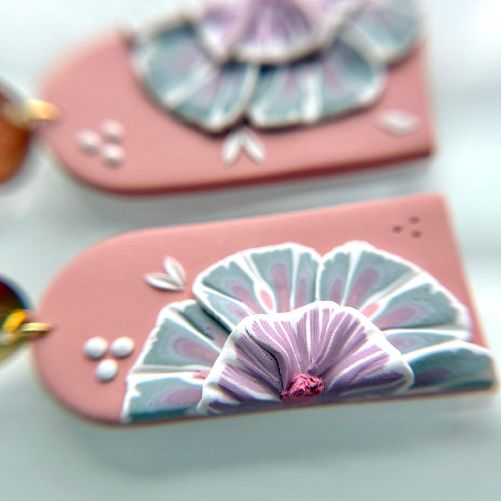 -Brushed gold: Green, lavender, pink and white petals, with brushed, wavy ear stud detail.