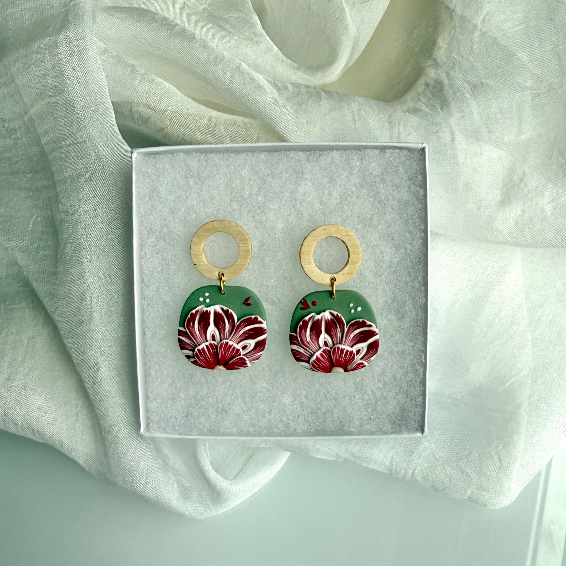 Please be mindful of the handmade nature of these clay creations. They can withstand normal wear but please refrain from wearing them in water, excessive heat or near tiny hands. Your earrings are delicate, especially the flower designs. Avoid the use of oils, cream or perfume, as they might affect the longevity. Due to the handmade nature, please allow slight variances in pattern and color due to the handmade nature and display differences.