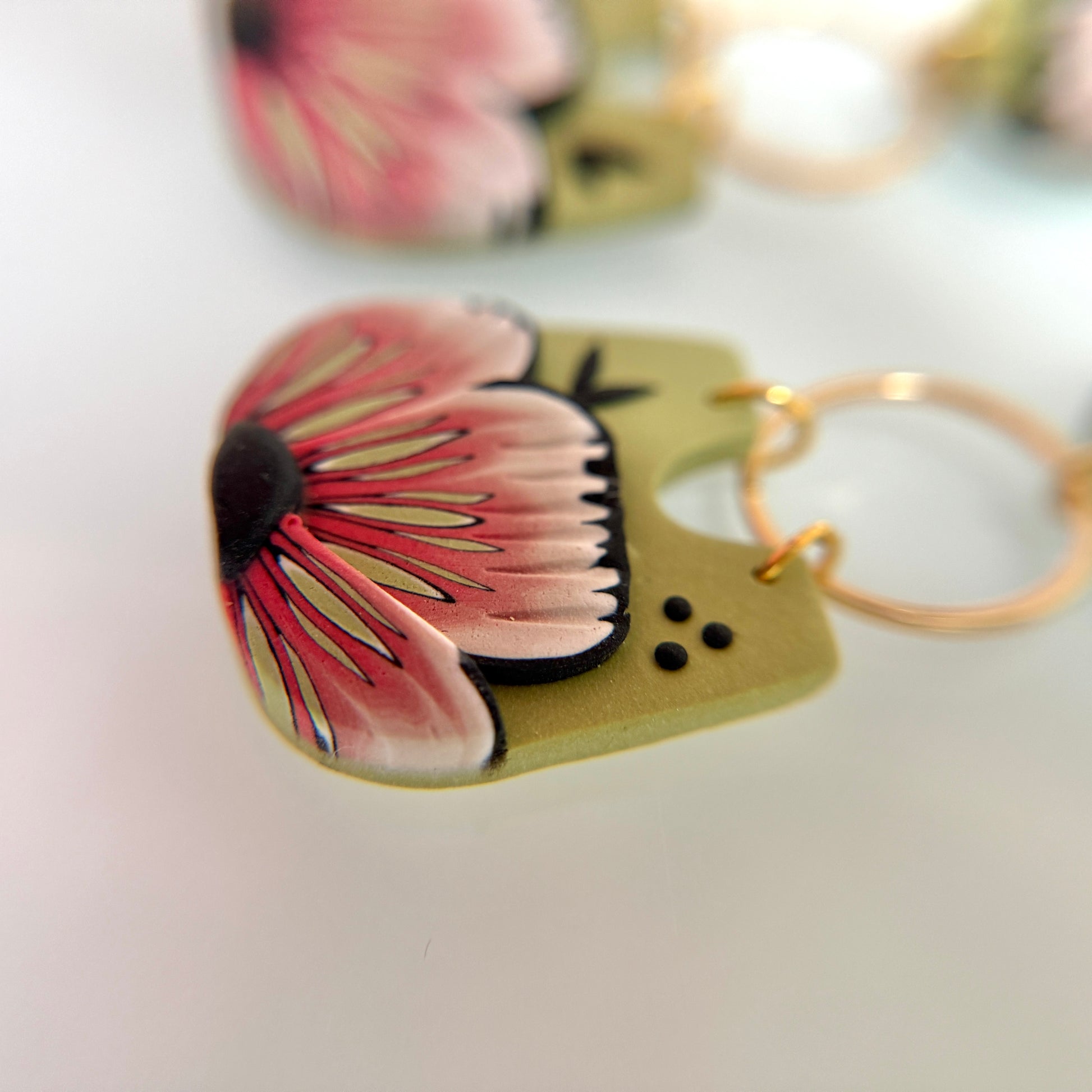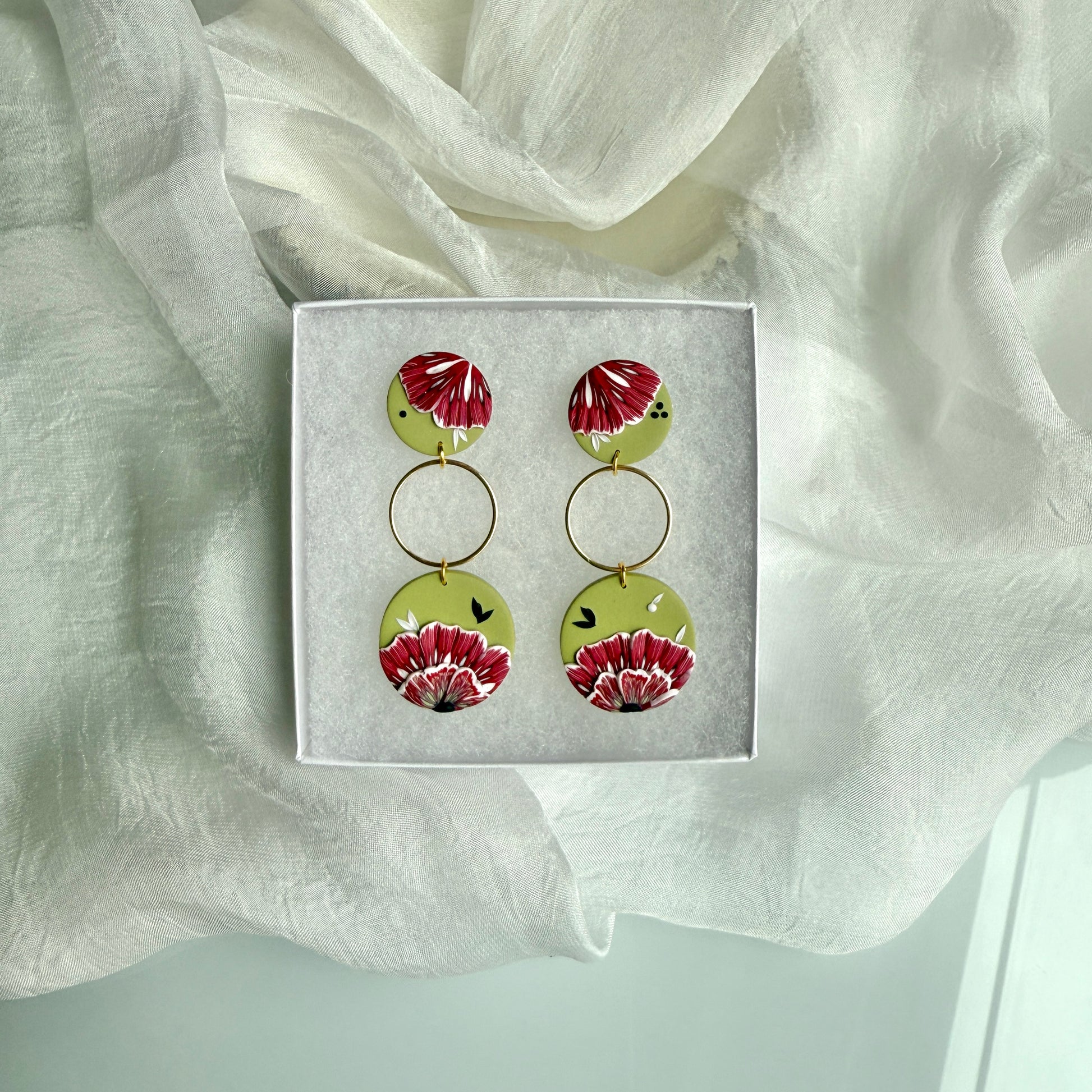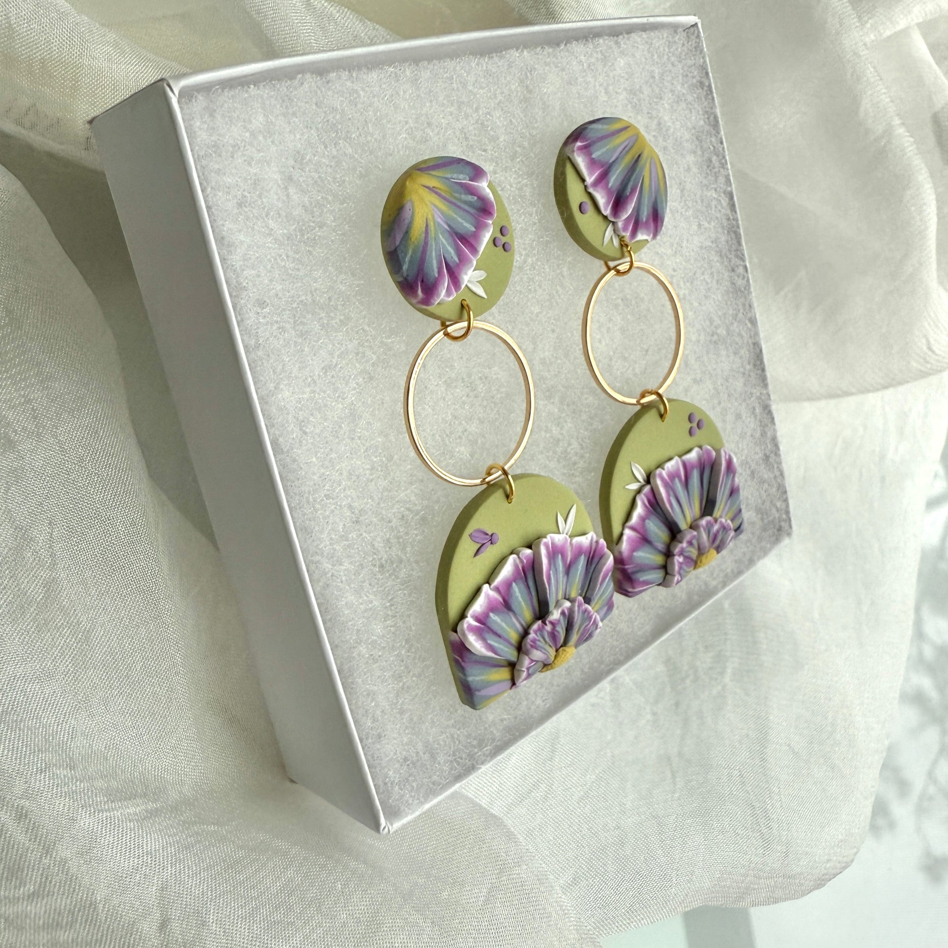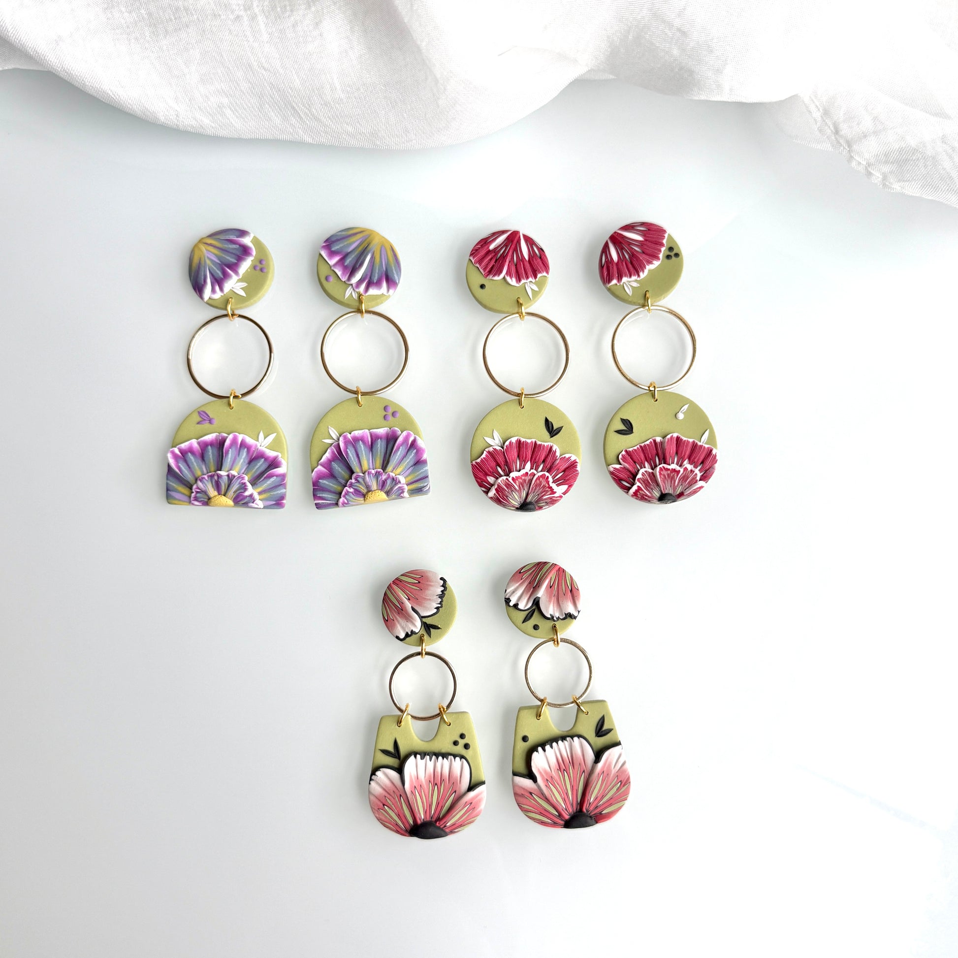 Please be mindful of the handmade nature of these clay creations. They can withstand normal wear but please refrain from wearing them in water, excessive heat or near tiny hands. Your earrings are delicate, especially the flower designs. Avoid the use of oils, cream or perfume, as they might affect the longevity. Due to the handmade nature, please allow slight variances in pattern and color due to the handmade nature and display differences.