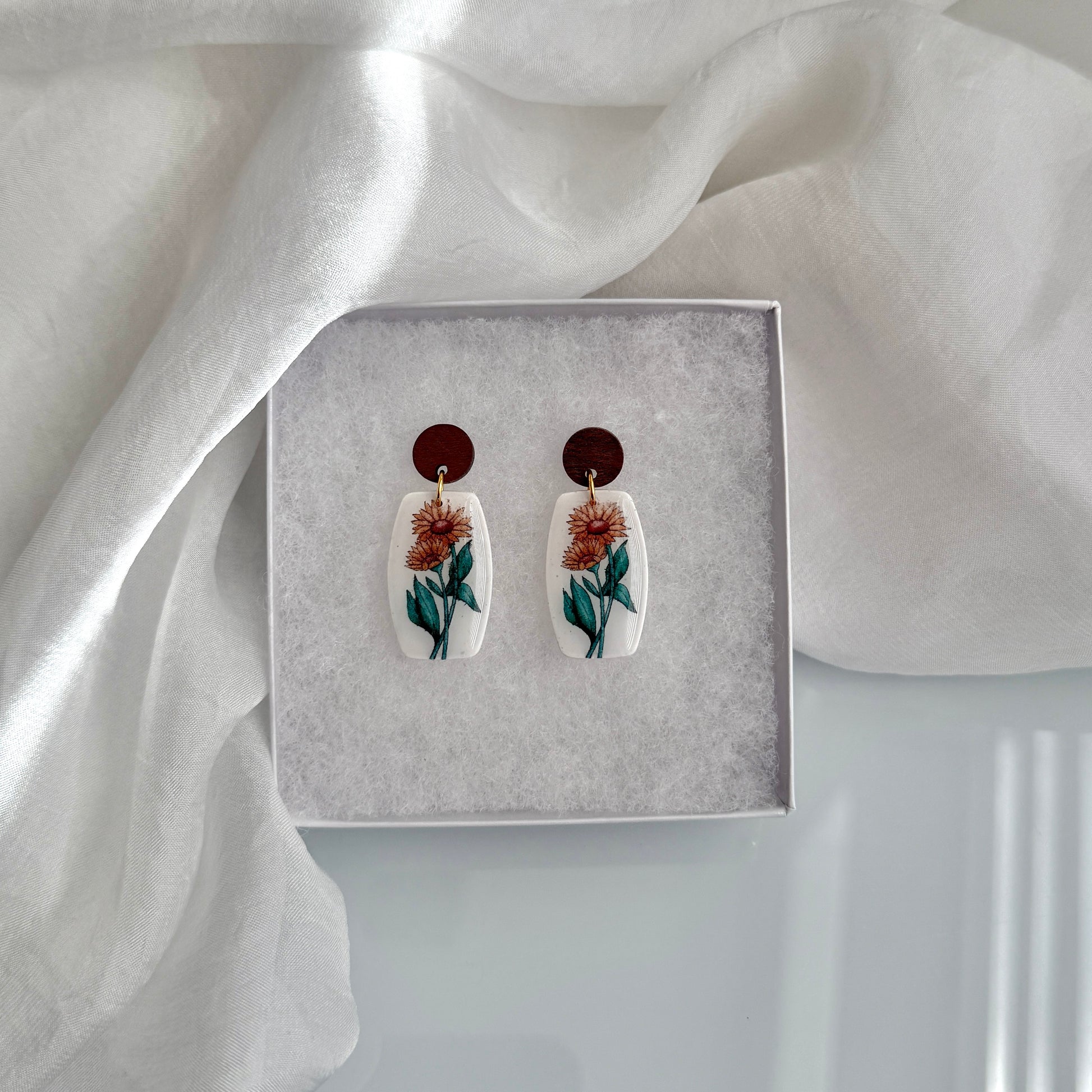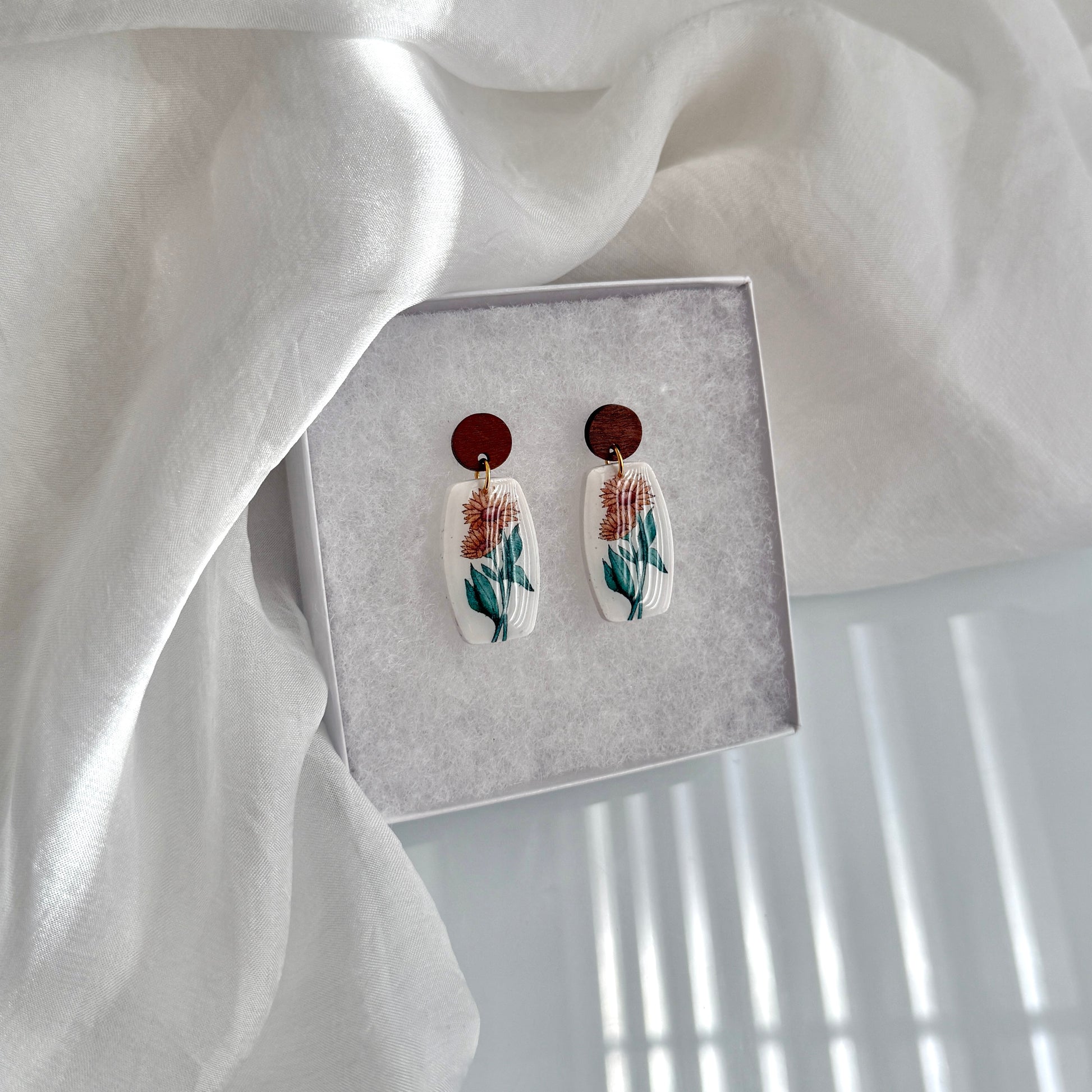 Please be mindful of the handmade nature of these clay creations. They can withstand normal wear but please refrain from wearing them in water, excessive heat or near tiny hands. Your earrings are delicate, especially the flower designs. Avoid the use of oils, cream or perfume, as they might affect the longevity. Due to the handmade nature, please allow slight variances in pattern and color due to the handmade nature and display differences.