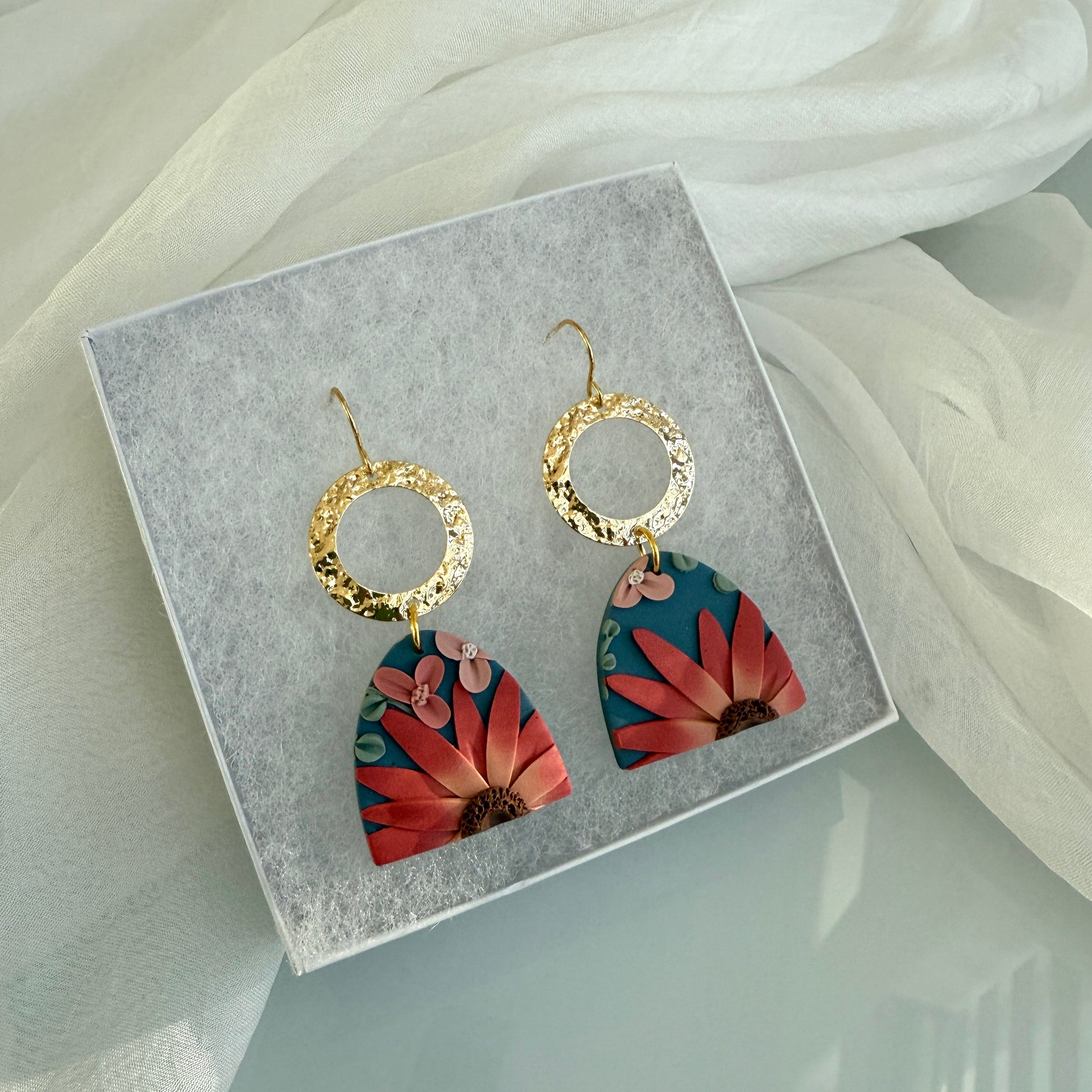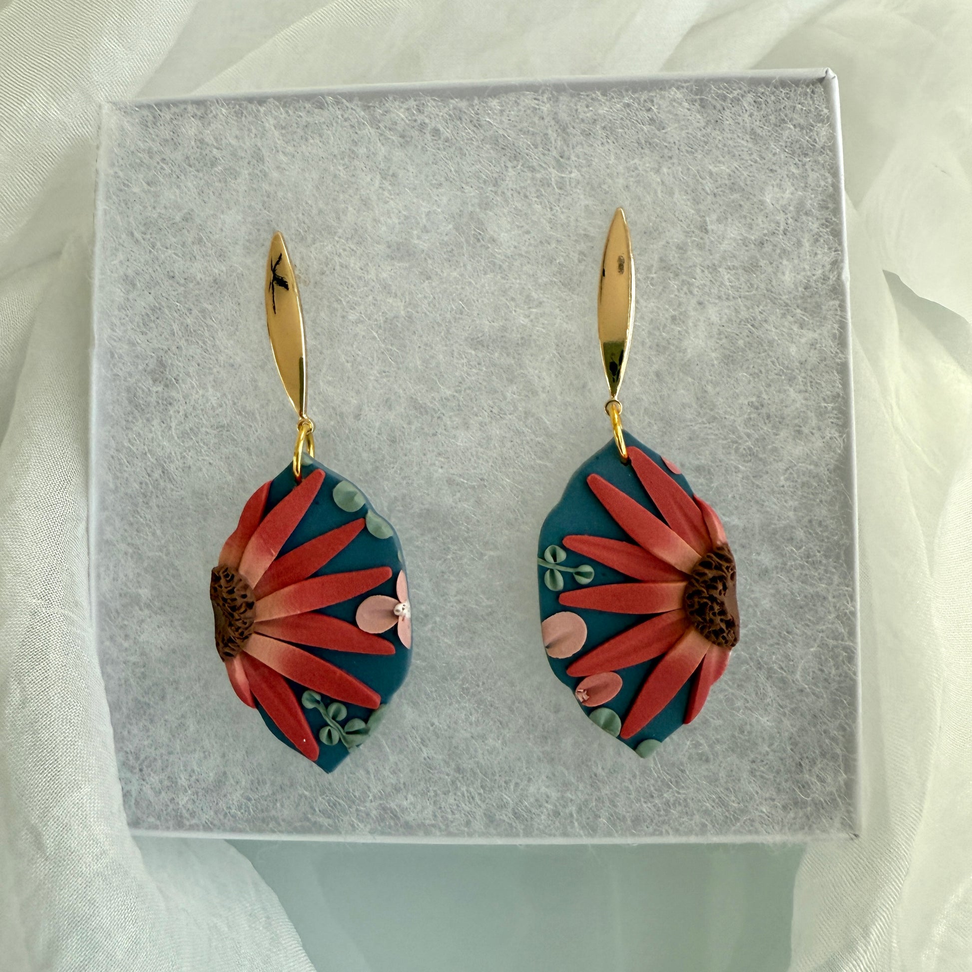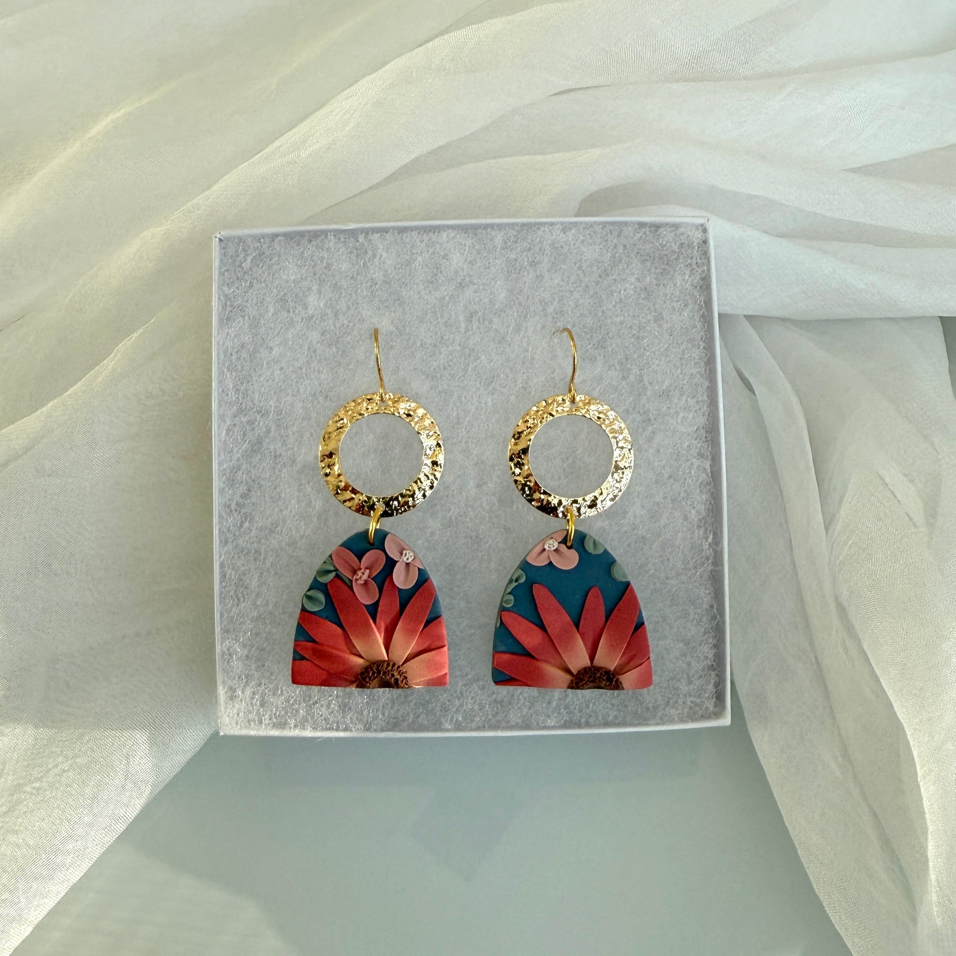 Please be mindful of the handmade nature of these clay creations. They can withstand normal wear but please refrain from wearing them in water, excessive heat or near tiny hands. Your earrings are delicate, especially the flower designs. Avoid the use of oils, cream or perfume, as they might affect the longevity. Due to the handmade nature, please allow slight variances in pattern and color due to the handmade nature and display differences.