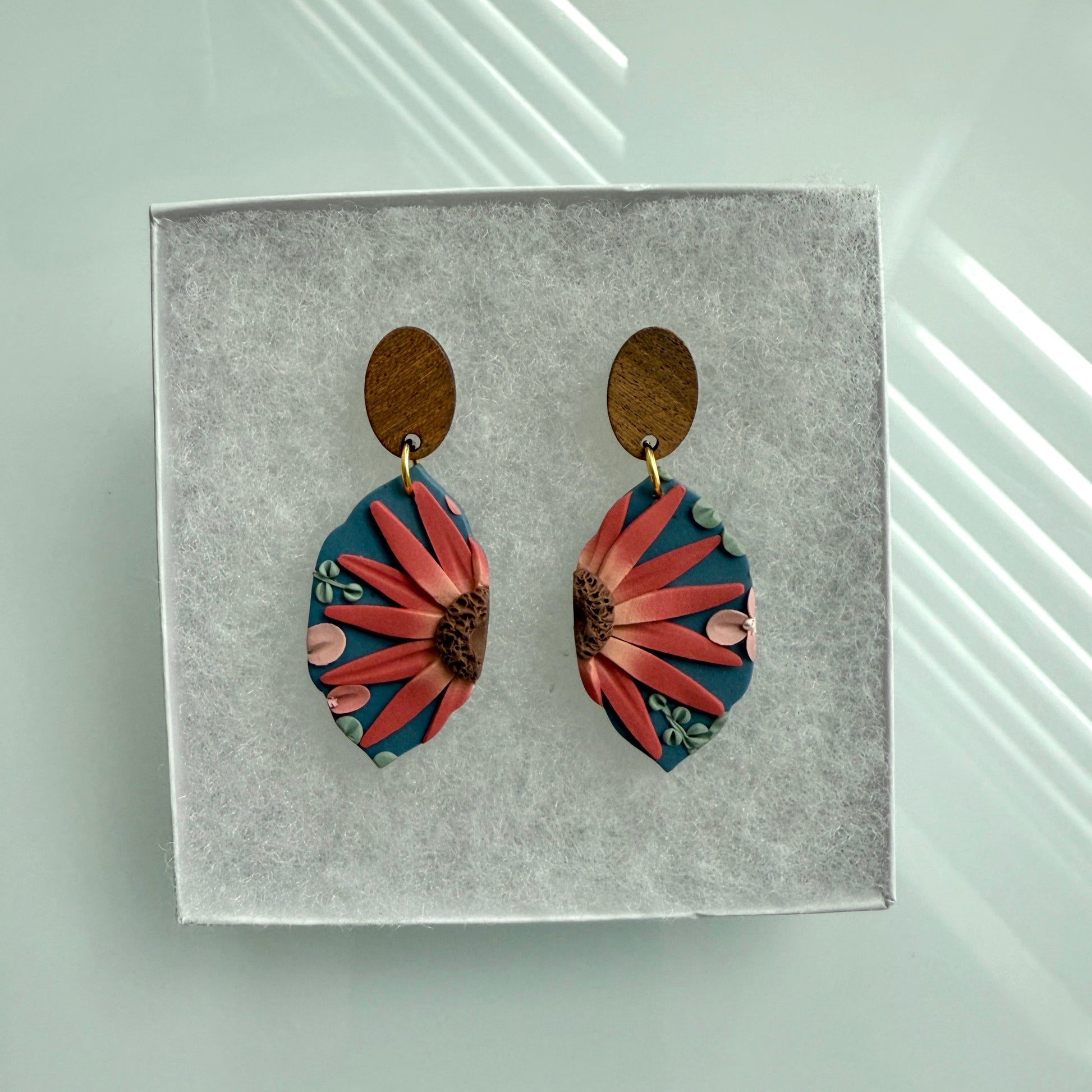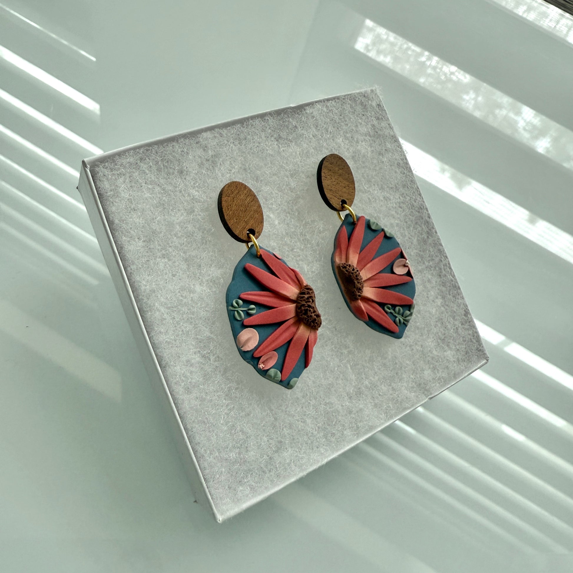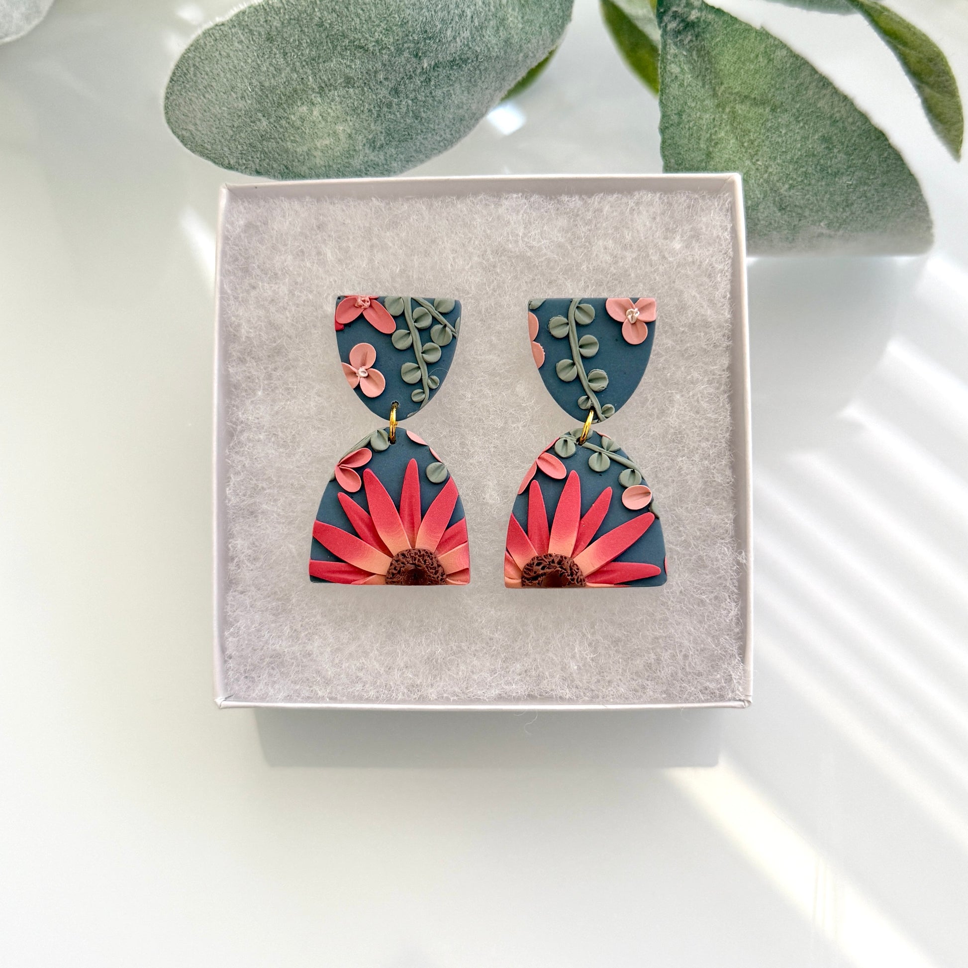 Please be mindful of the handmade nature of these clay creations. They can withstand normal wear but please refrain from wearing them in water, excessive heat or near tiny hands. Your earrings are delicate, especially the flower designs. Avoid the use of oils, cream or perfume, as they might affect the longevity. Due to the handmade nature, please allow slight variances in pattern and color due to the handmade nature and display differences.