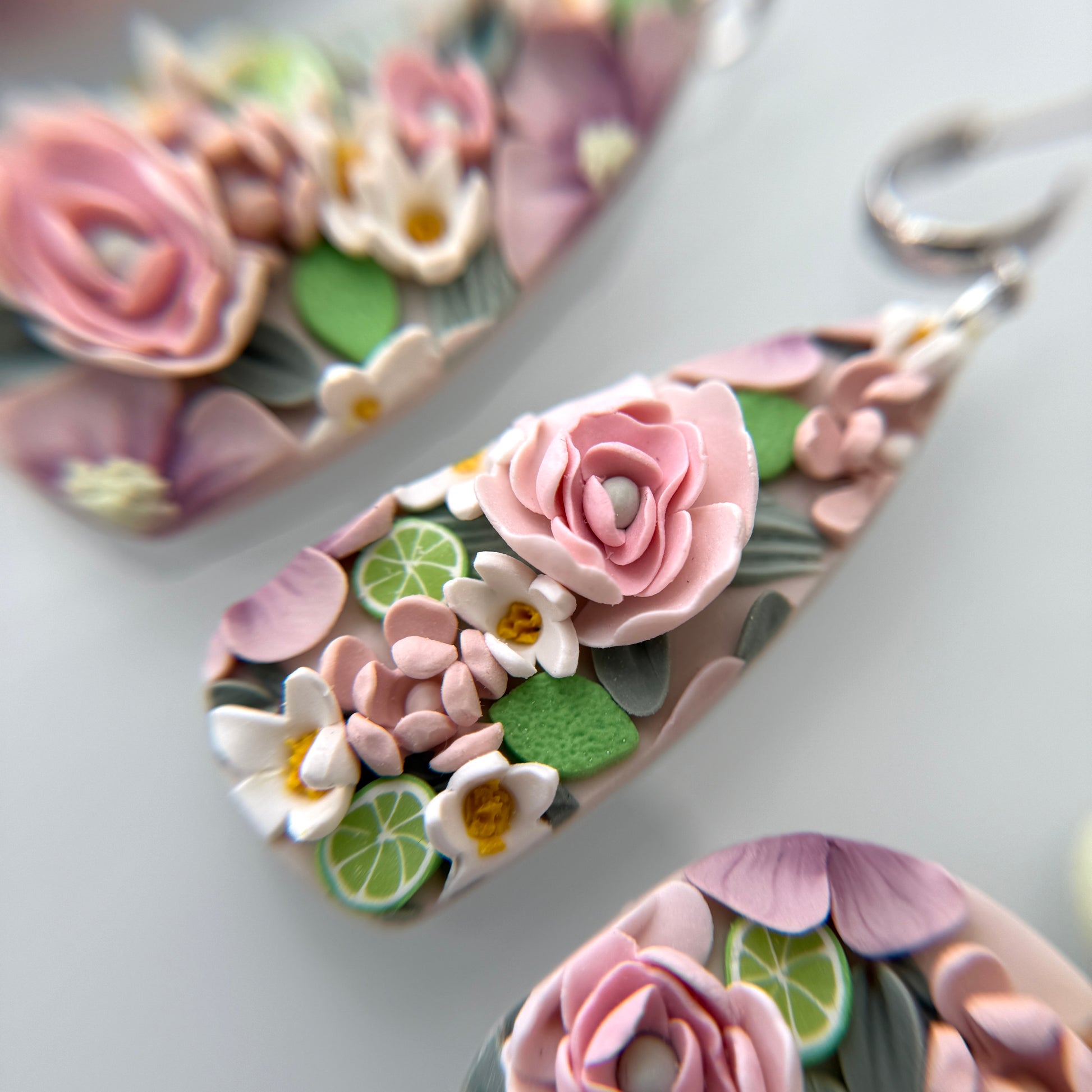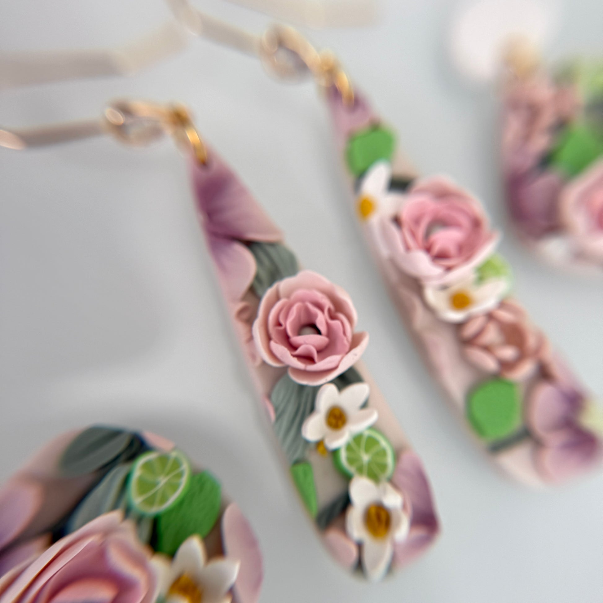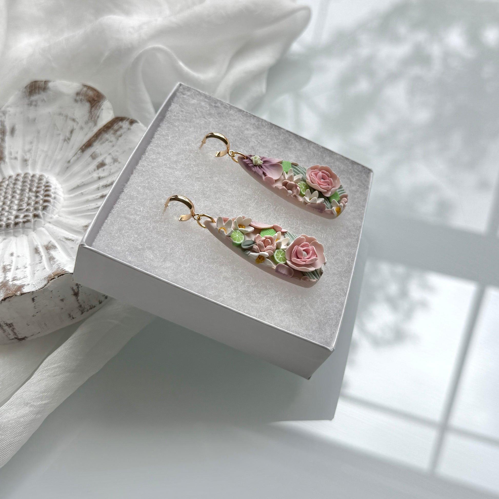 Please be mindful of the handmade nature of these clay creations. They can withstand normal wear but please refrain from wearing them in water, excessive heat or near tiny hands. Your earrings are delicate, especially the flower designs. Avoid the use of oils, cream or perfume, as they might affect the longevity. Please allow slight variances in pattern and color due to display differences.