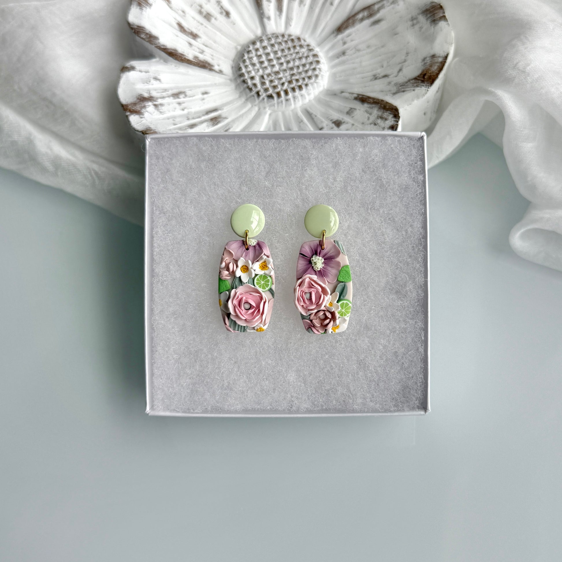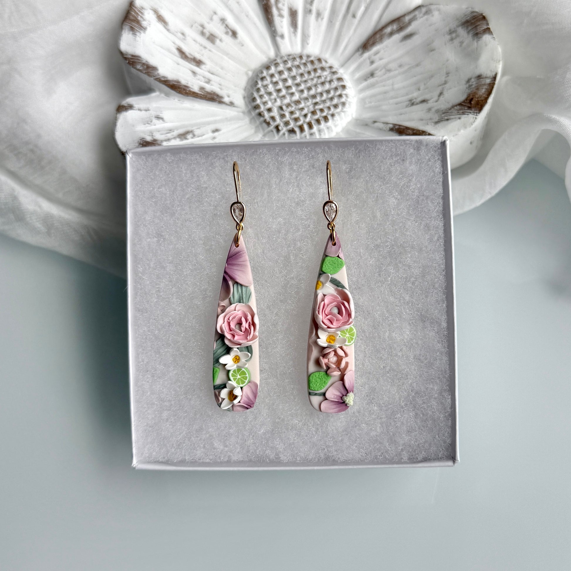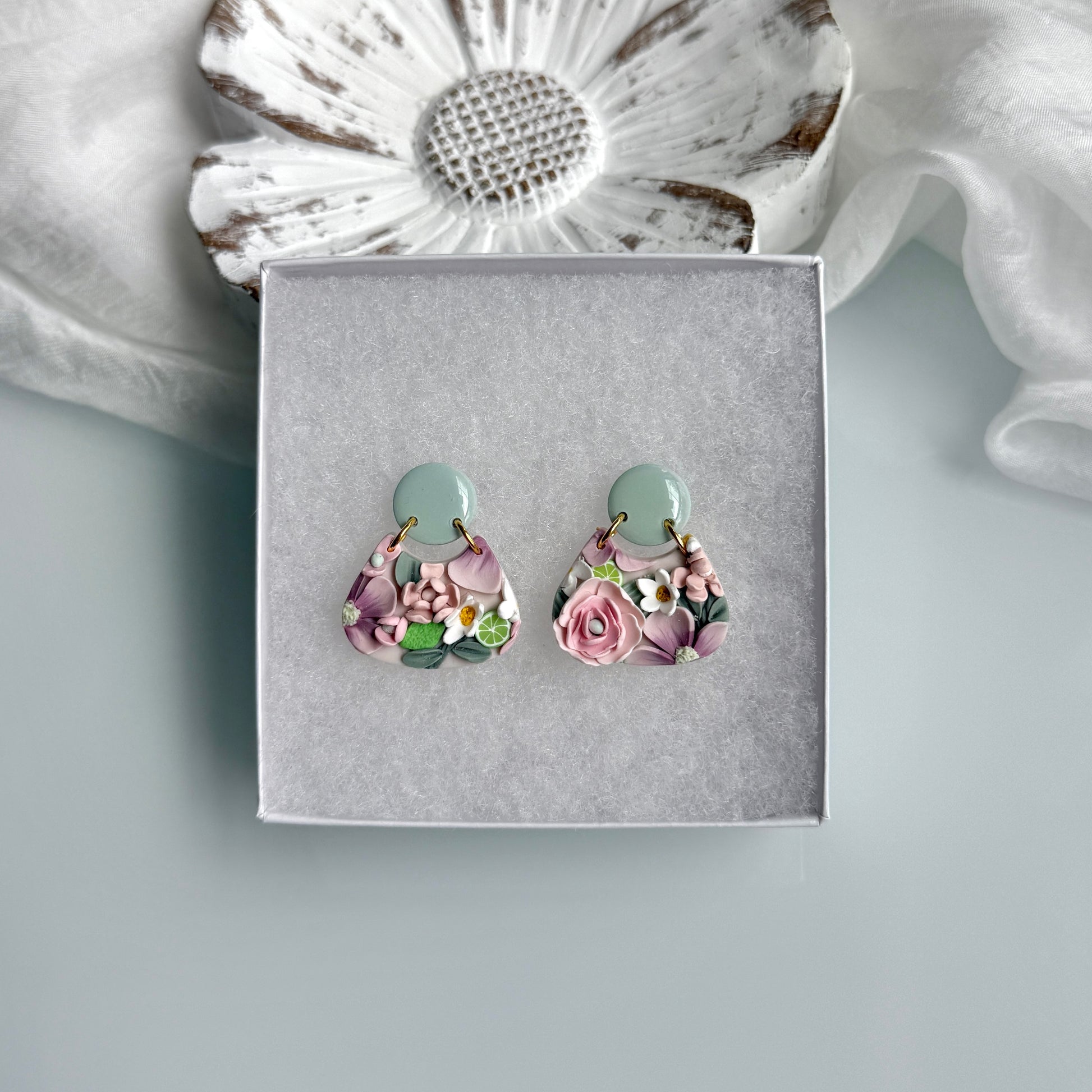 Please be mindful of the handmade nature of these clay creations. They can withstand normal wear but please refrain from wearing them in water, excessive heat or near tiny hands. Your earrings are delicate, especially the flower designs. Avoid the use of oils, cream or perfume, as they might affect the longevity. Please allow slight variances in pattern and color due to display differences.
