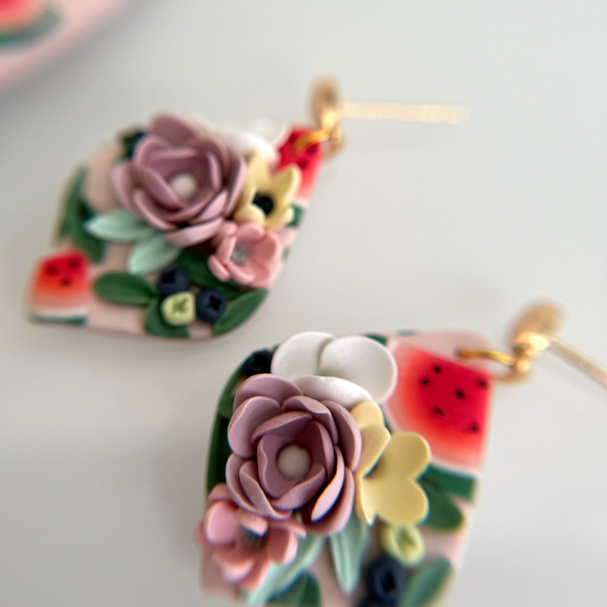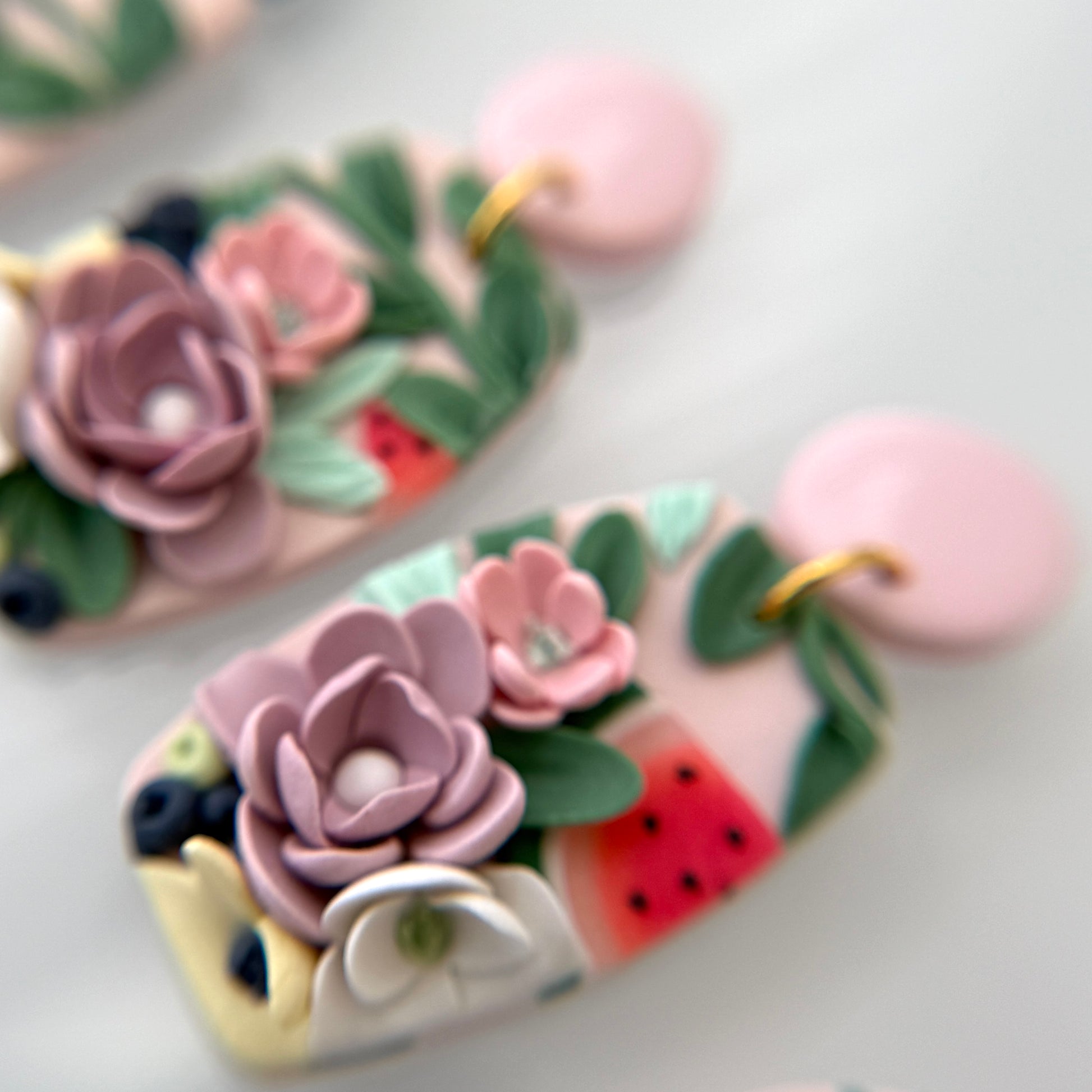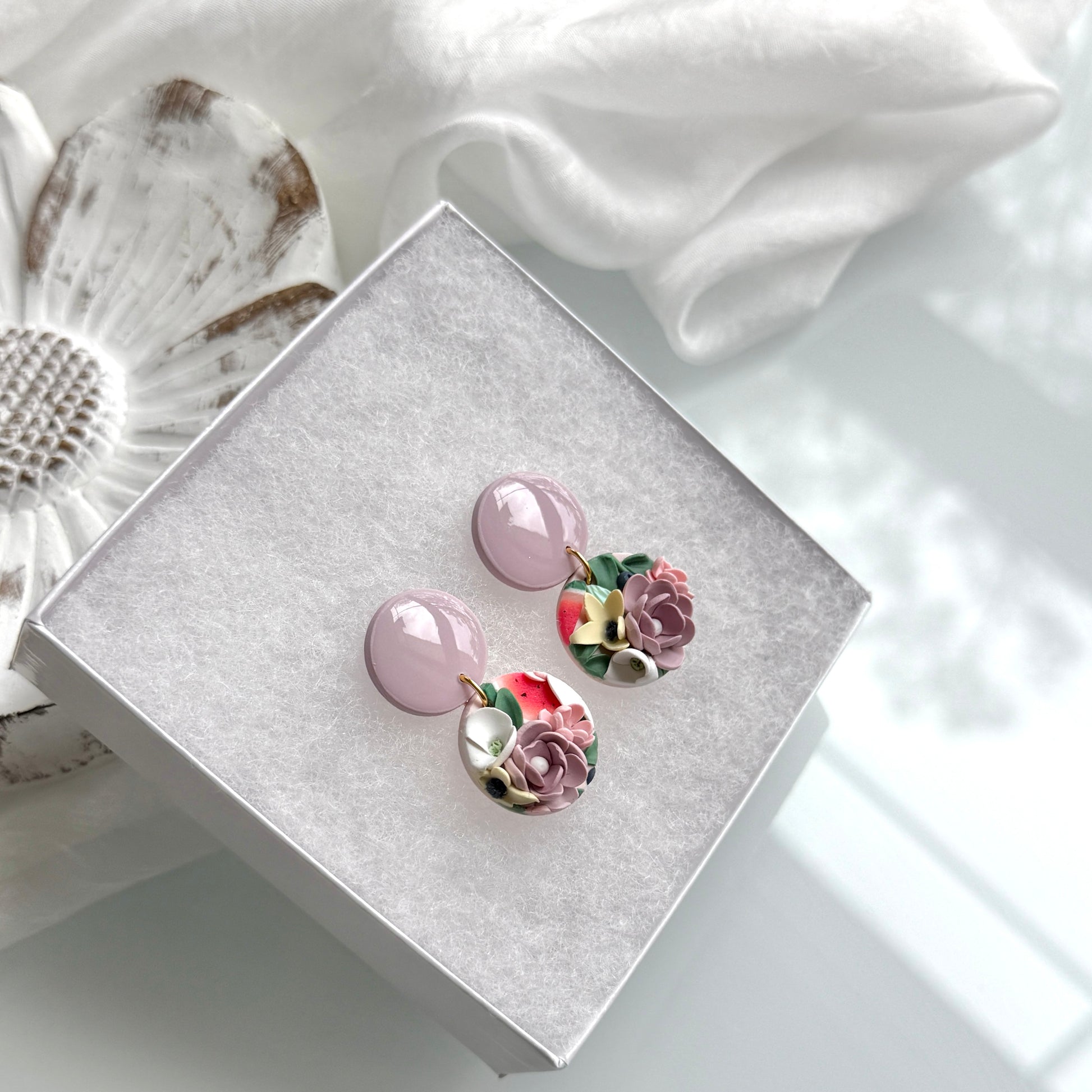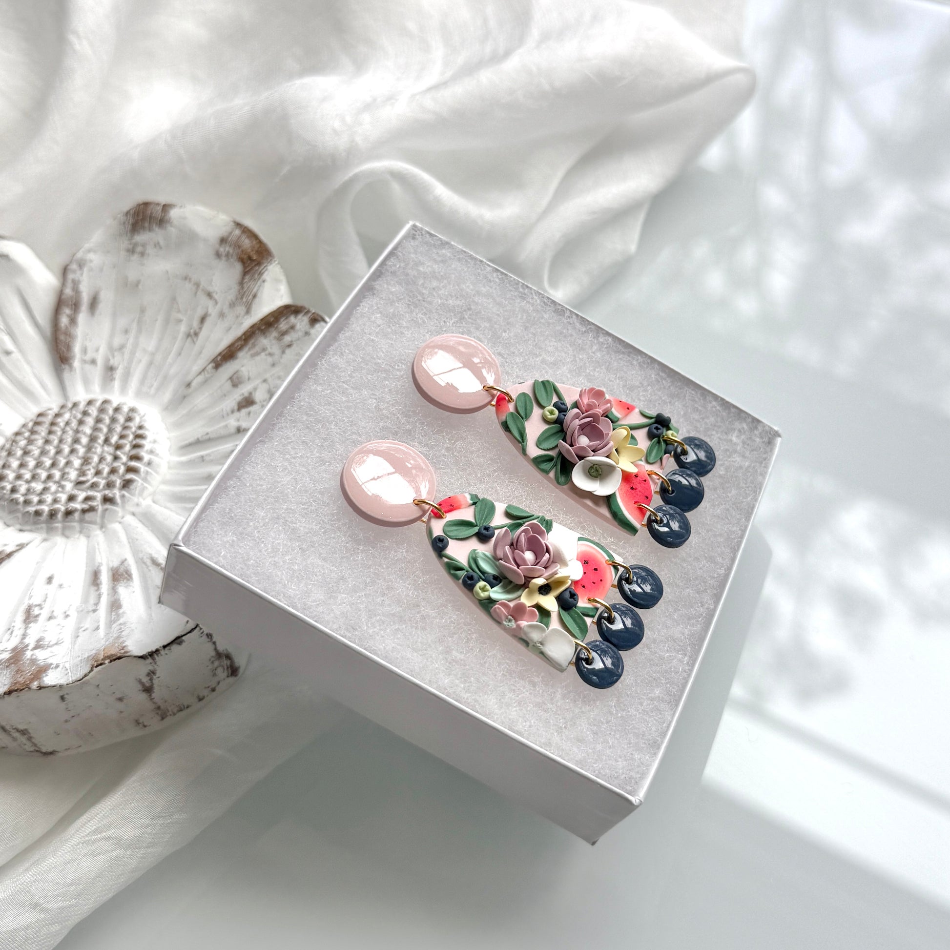 Please be mindful of the handmade nature of these clay creations. They can withstand normal wear but please refrain from wearing them in water, excessive heat or near tiny hands. Your earrings are delicate, especially the flower designs. Avoid the use of oils, cream or perfume, as they might affect the longevity. Please allow slight variances in pattern and color due to display differences.