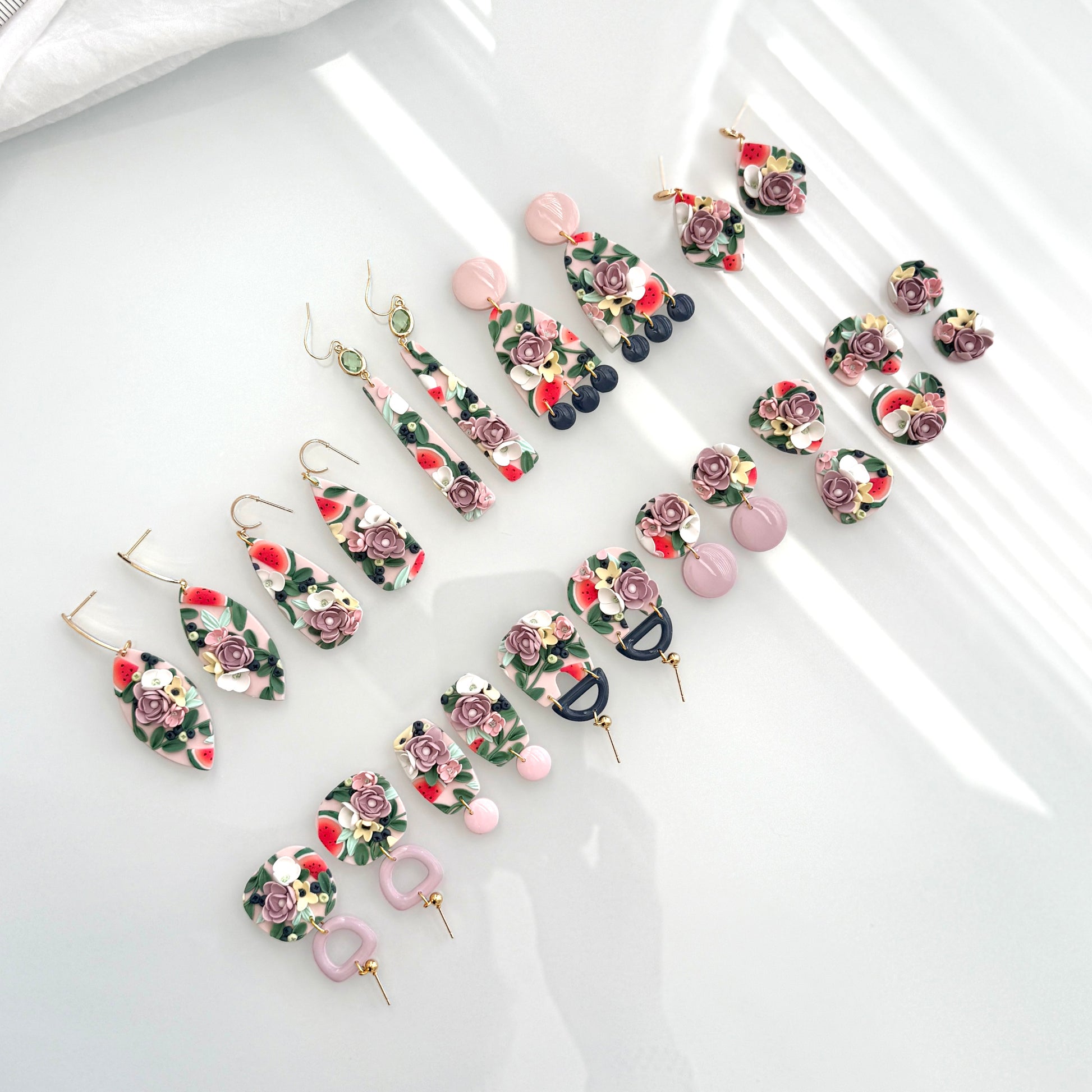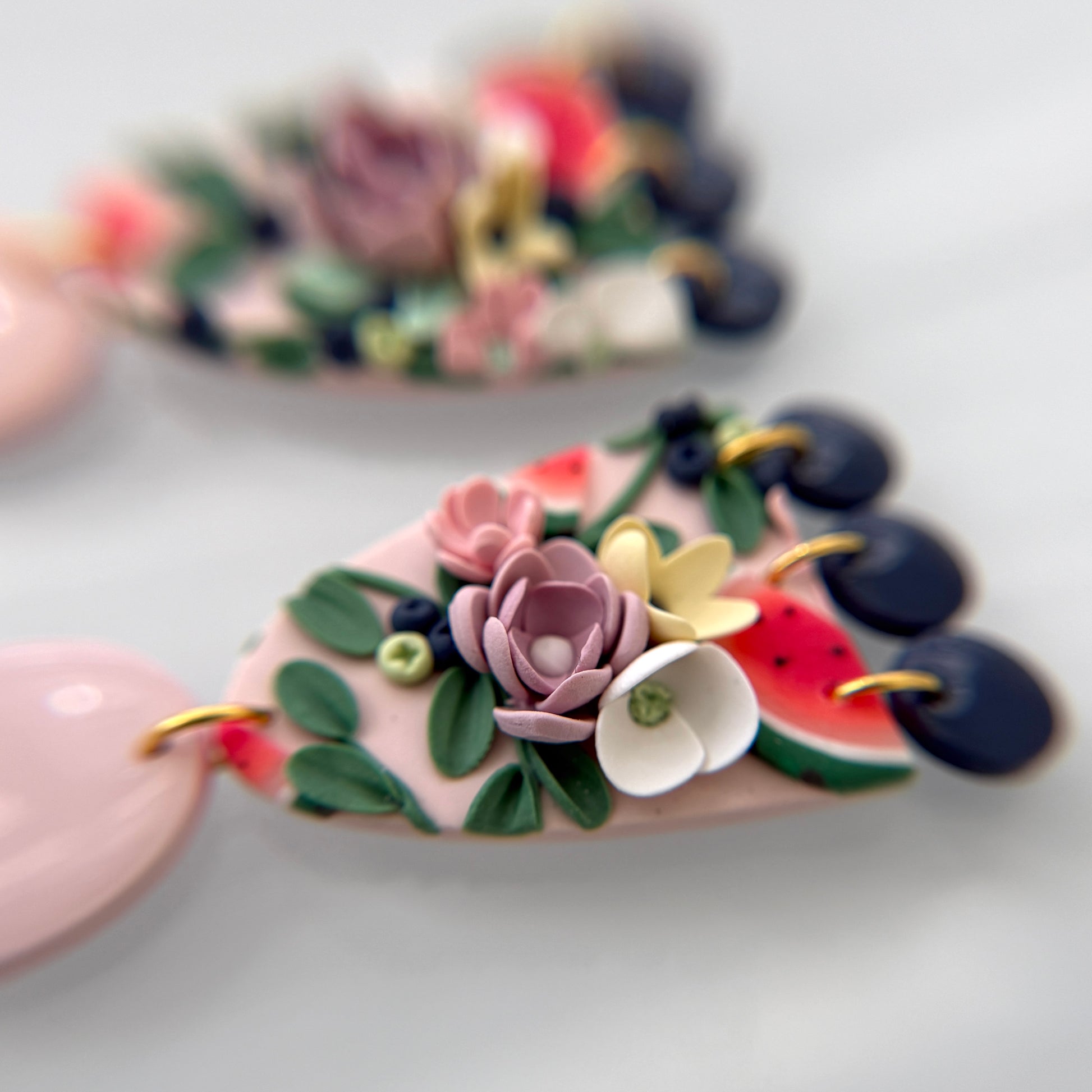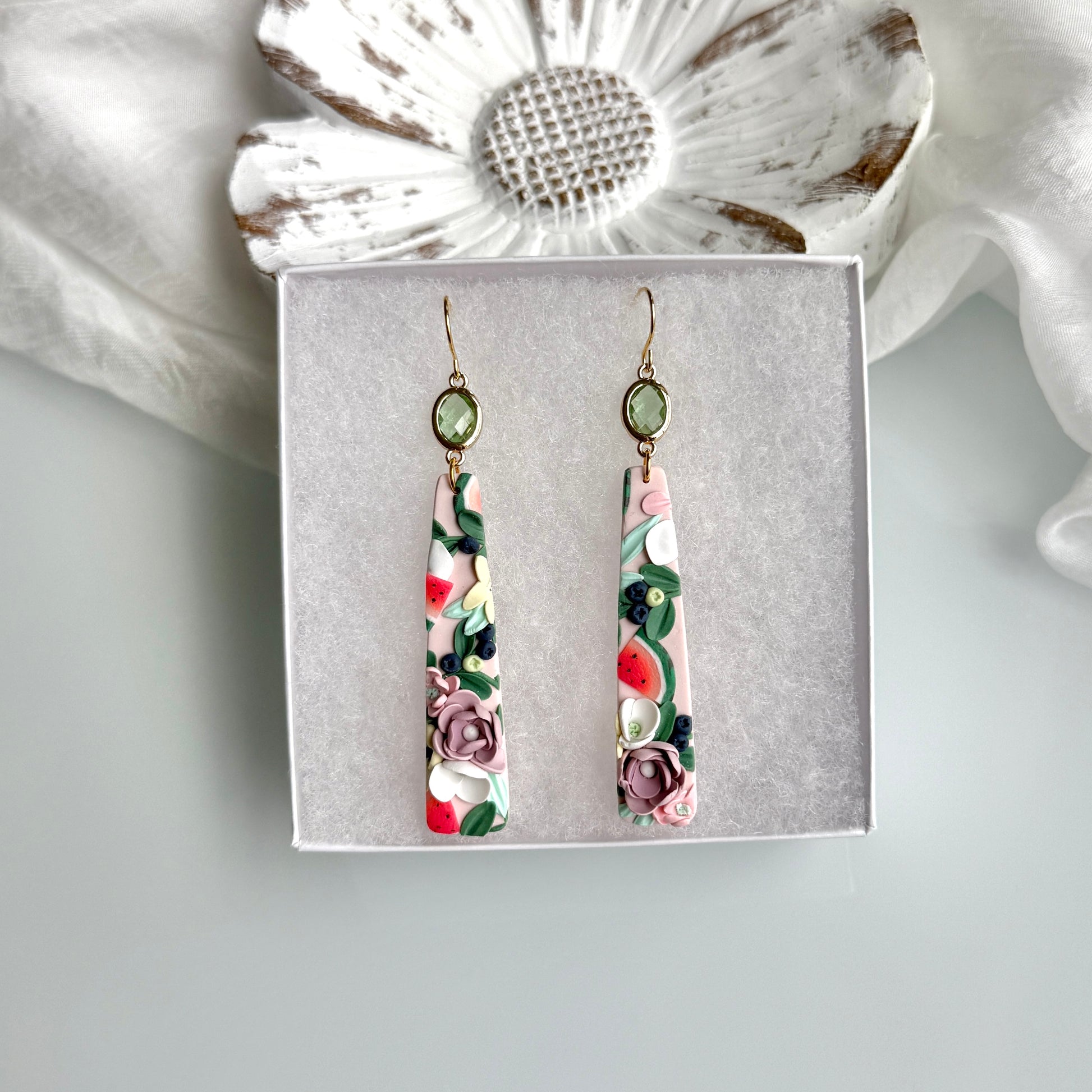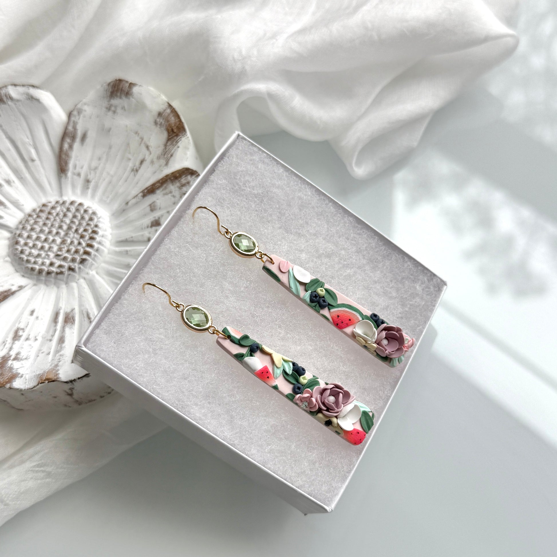 Please be mindful of the handmade nature of these clay creations. They can withstand normal wear but please refrain from wearing them in water, excessive heat or near tiny hands. Your earrings are delicate, especially the flower designs. Avoid the use of oils, cream or perfume, as they might affect the longevity. Please allow slight variances in pattern and color due to display differences.