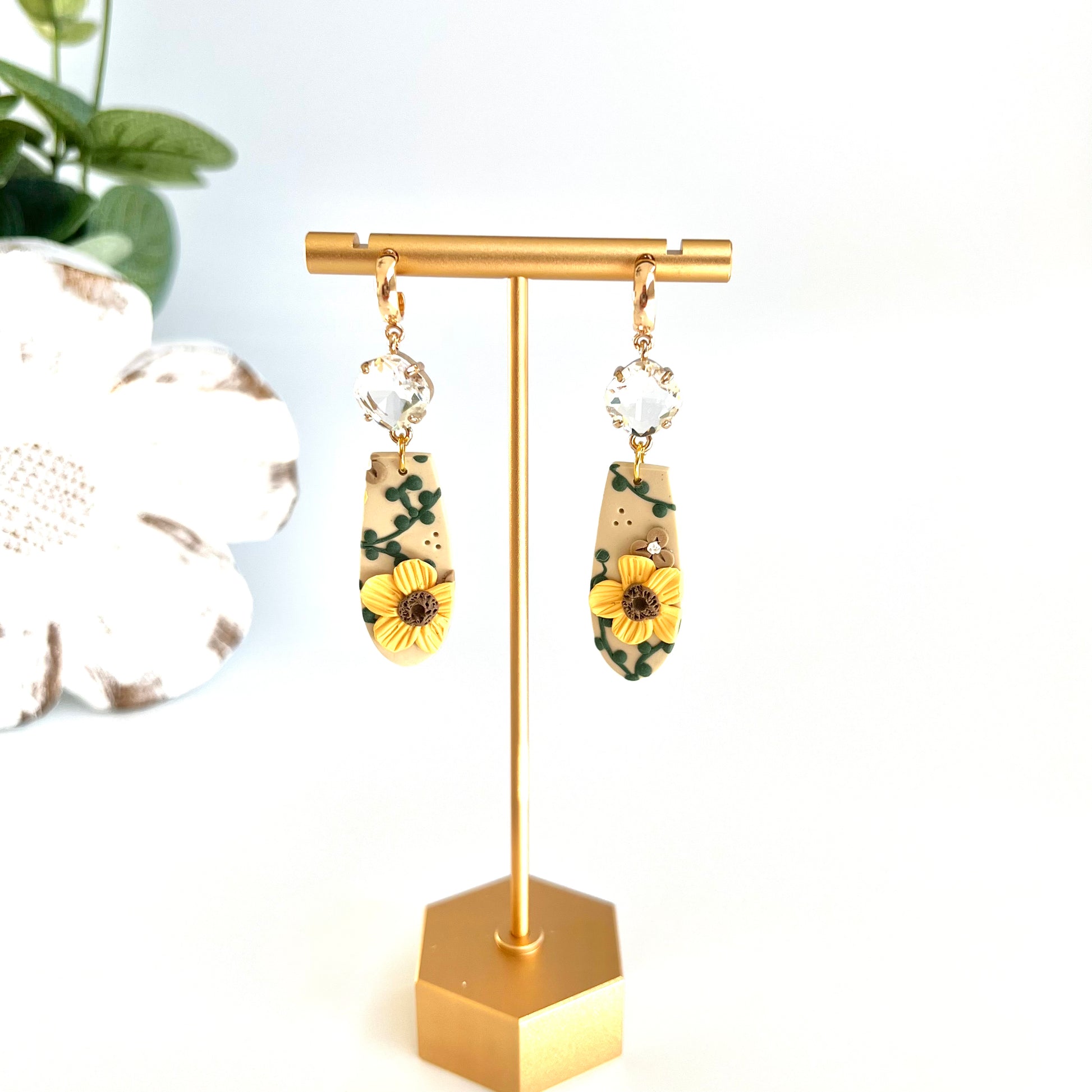 *Please be mindful of the handmade nature of these clay creations. They can withstand normal wear but please refrain from wearing them in water, excessive heat or near tiny hands. Your earrings are delicate, especially the flower designs. Avoid the use of oils, cream or perfume, as they might affect the longevity. Please allow slight variances in pattern and color due to display differences.
