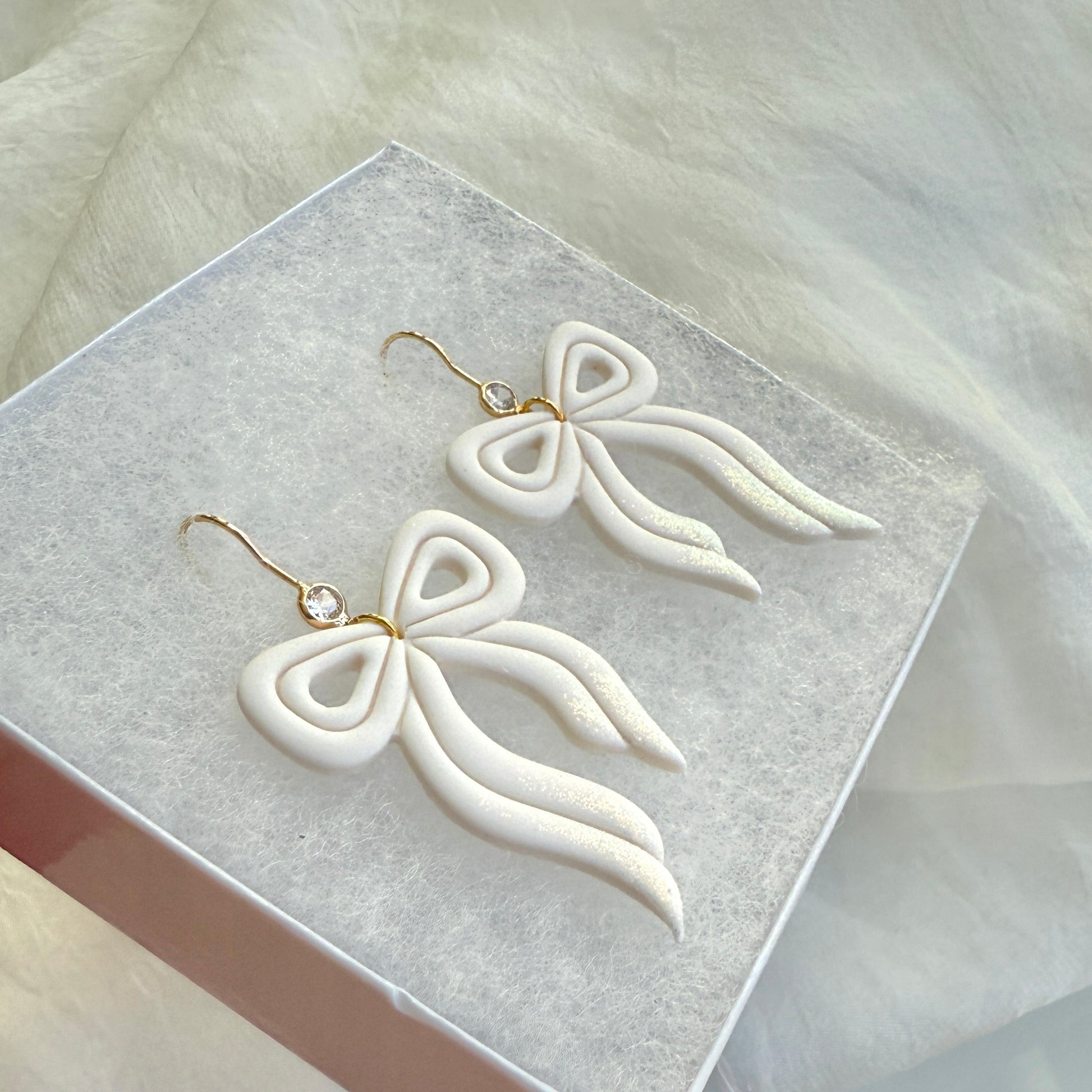 Elegant Bow with Zircon ear hook: Approximate total length: 60mm