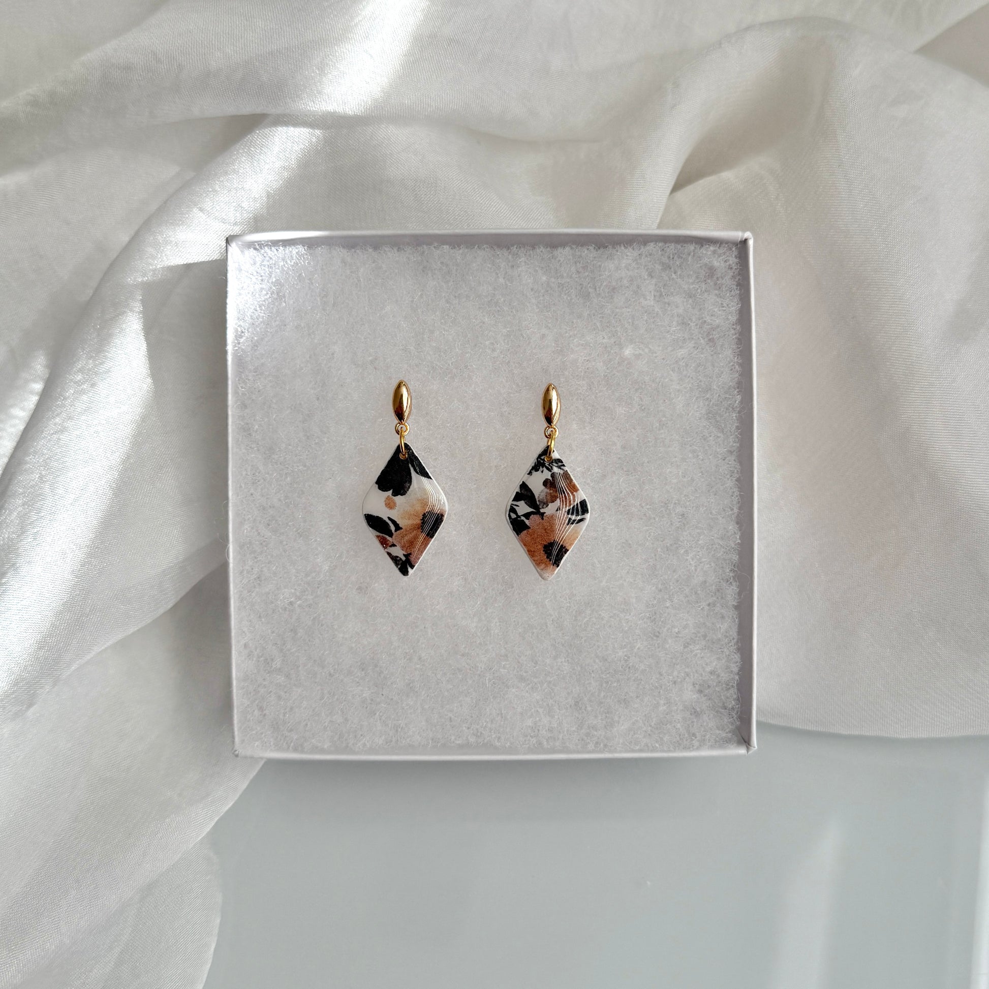 Please be mindful of the handmade nature of these clay creations. They can withstand normal wear but please refrain from wearing them in water, excessive heat or near tiny hands. Your earrings are delicate, especially the flower designs. Avoid the use of oils, cream or perfume, as they might affect the longevity. Due to the handmade nature, please allow slight variances in pattern and color due to the handmade nature and display differences.